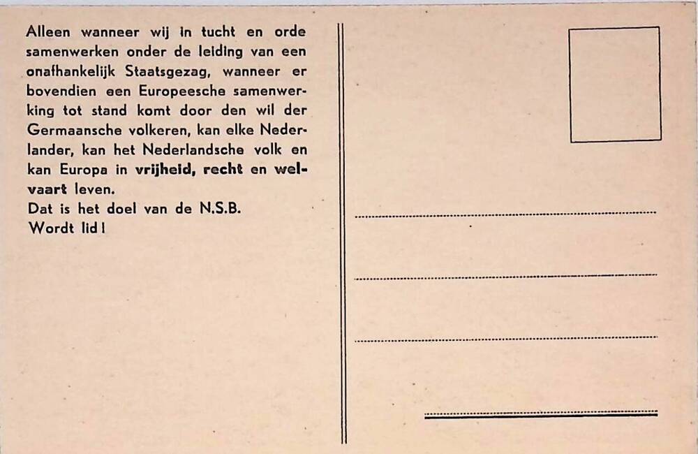 Briefkaart met verkiezingsposter van de NSB: "Met Mu...
