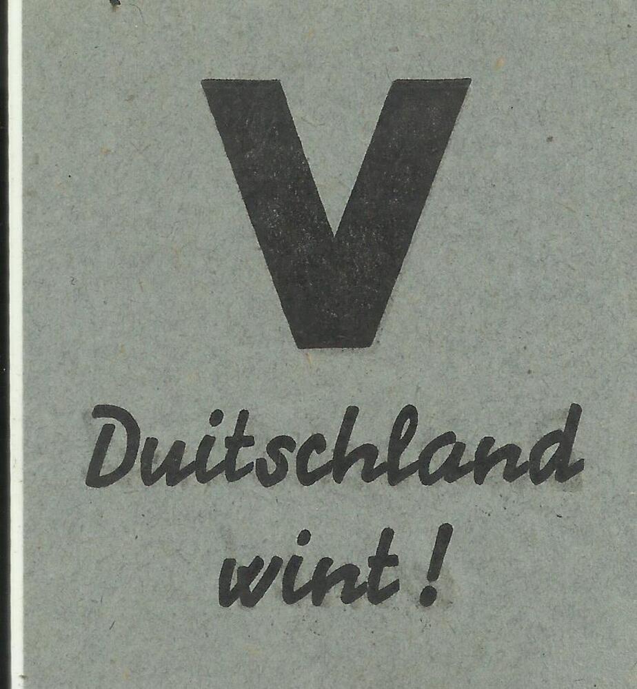 "V. Duitschland wint" gedrukt op grijs papier.