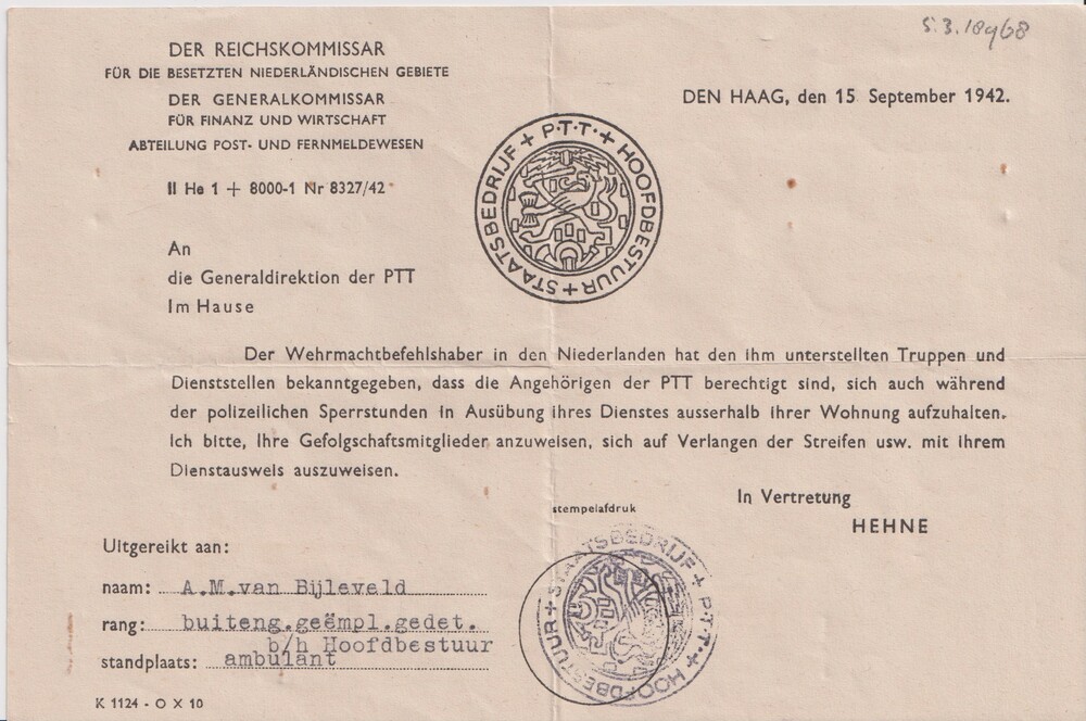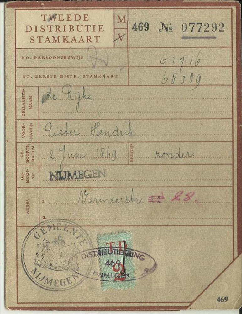 Tweede Distributiestamkaart van : De Rijke, Pieter, H