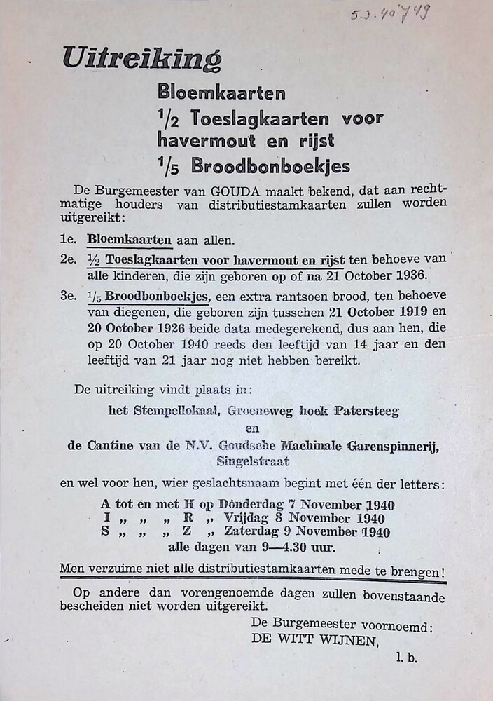 Uitreiking, Bloemkaarten, 1/2 Toeslagkaarten voor ha...