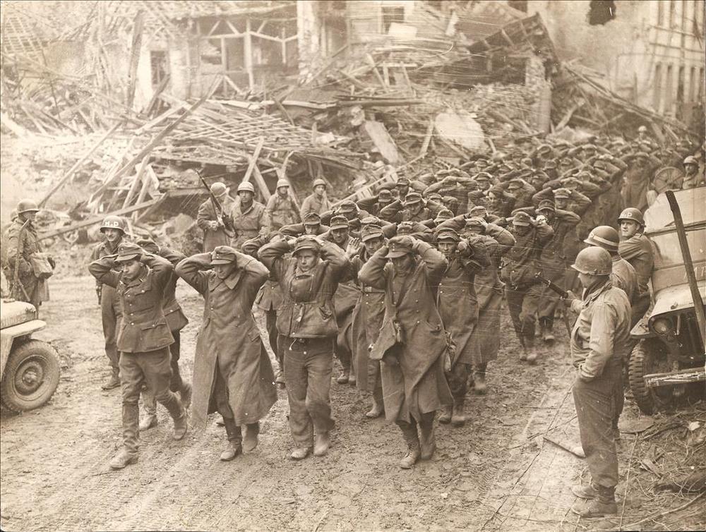kolonne Duitse krijgsgevangenen onder Amerikaanse be...