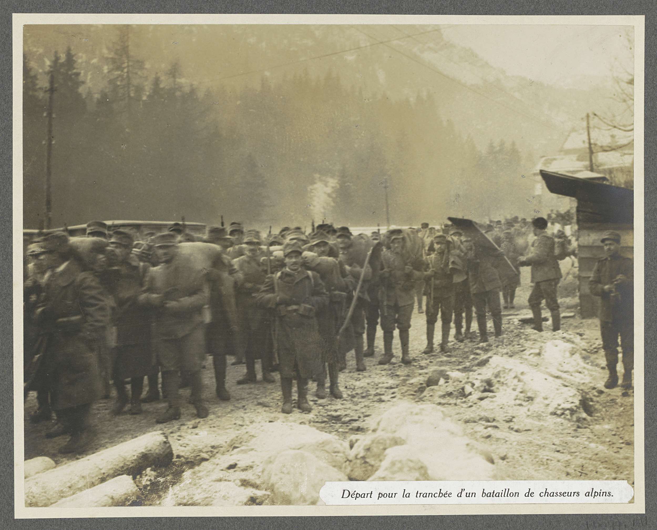 Groep militairen op weg naar de loopgraven in de Dol...