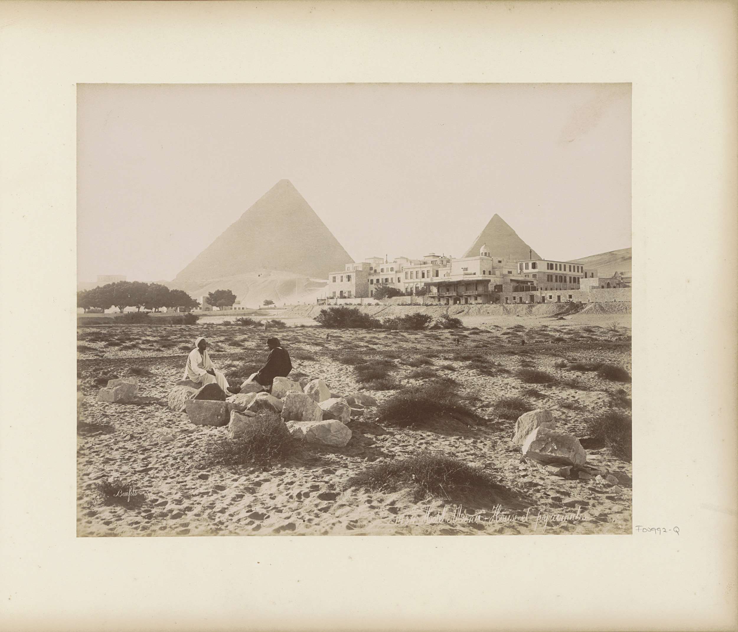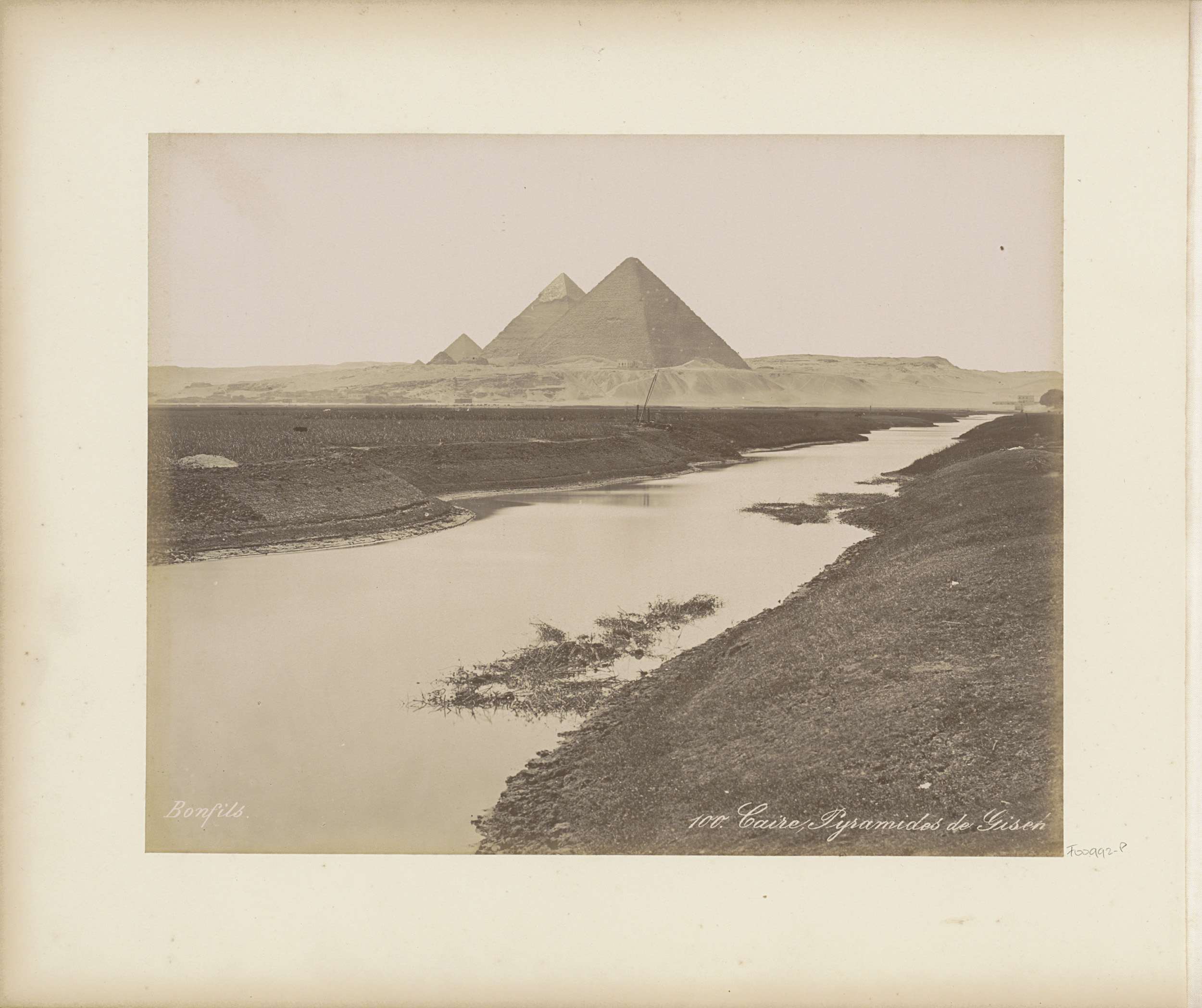 Gezicht op de piramides van Gizeh met op de voorgron...