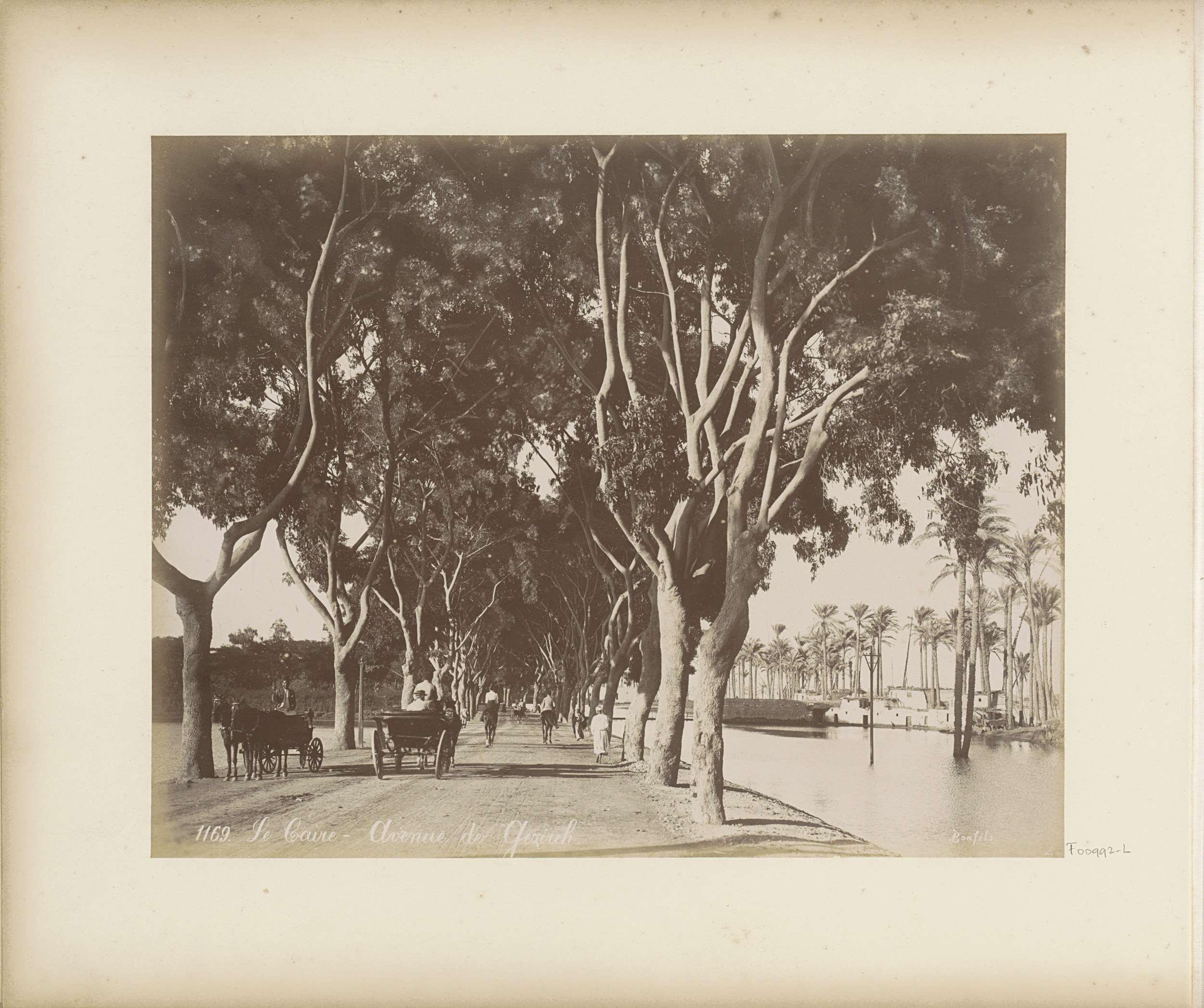 Paarden en wagens op de Avenue de Gezireh in Caïro