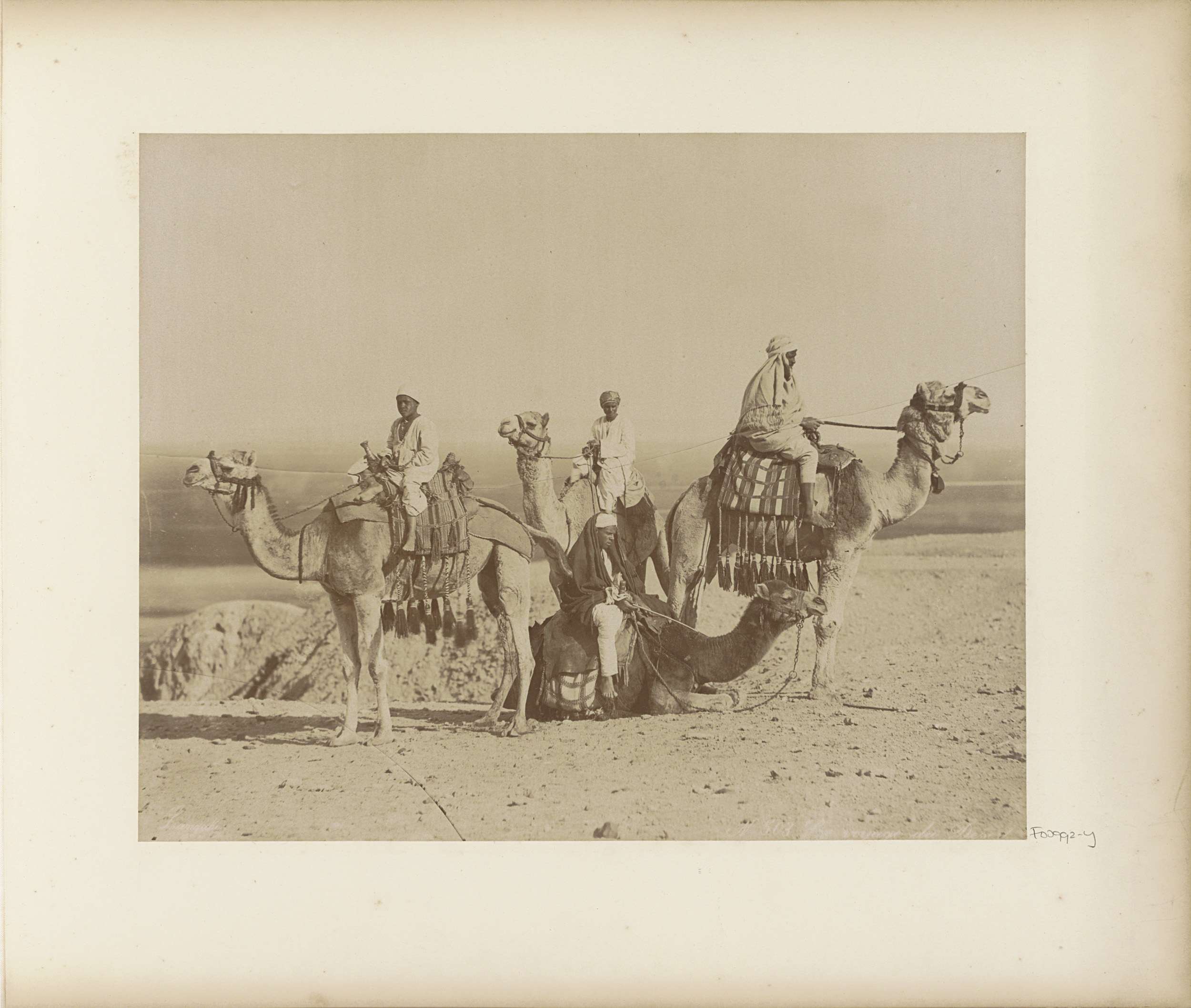 Ruiters op kamelen in een Egyptische woestijn