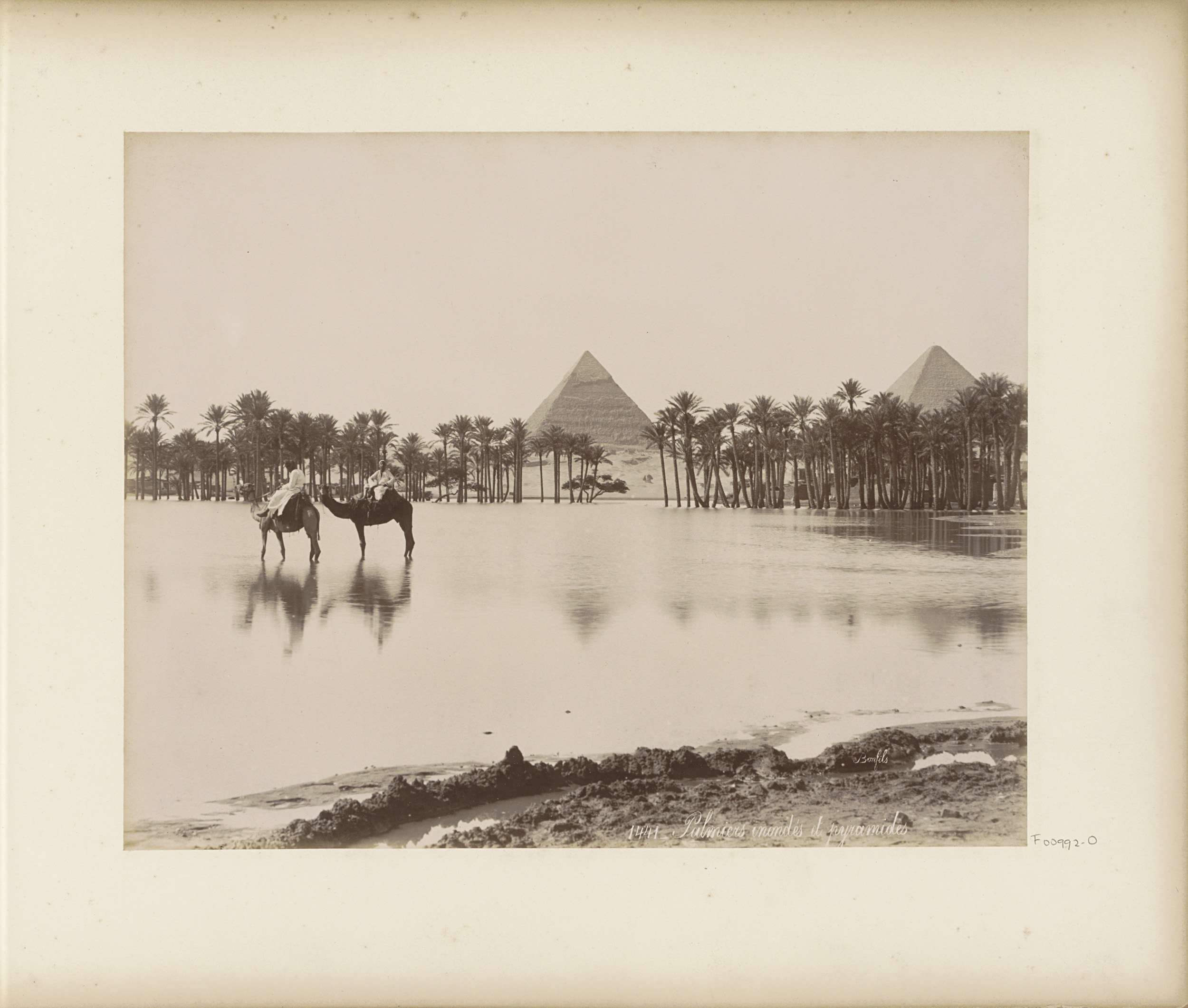 Ondergelopen palmbomen bij piramides
