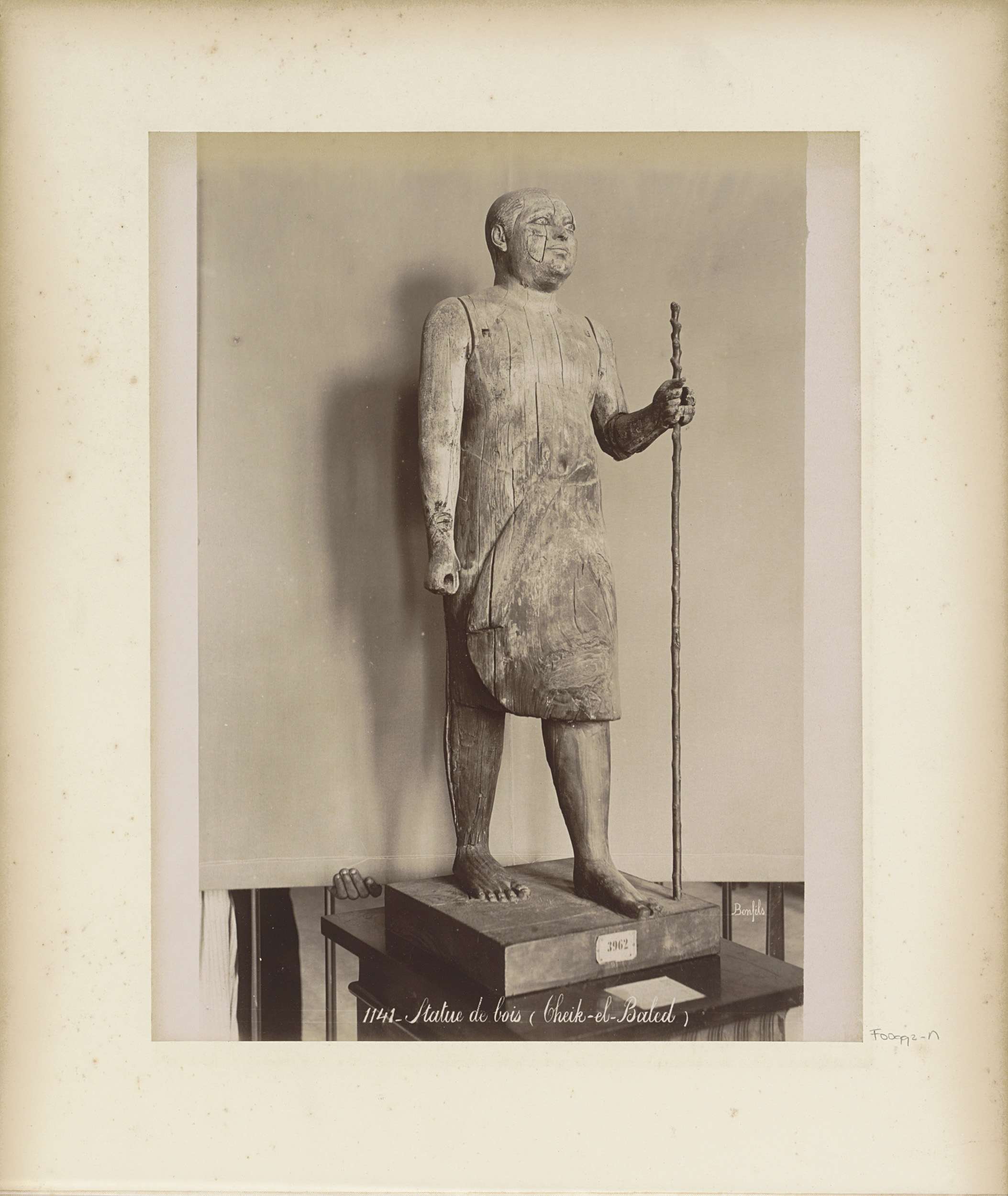 Houten standbeeld van een man met een staf (Cheik-el...