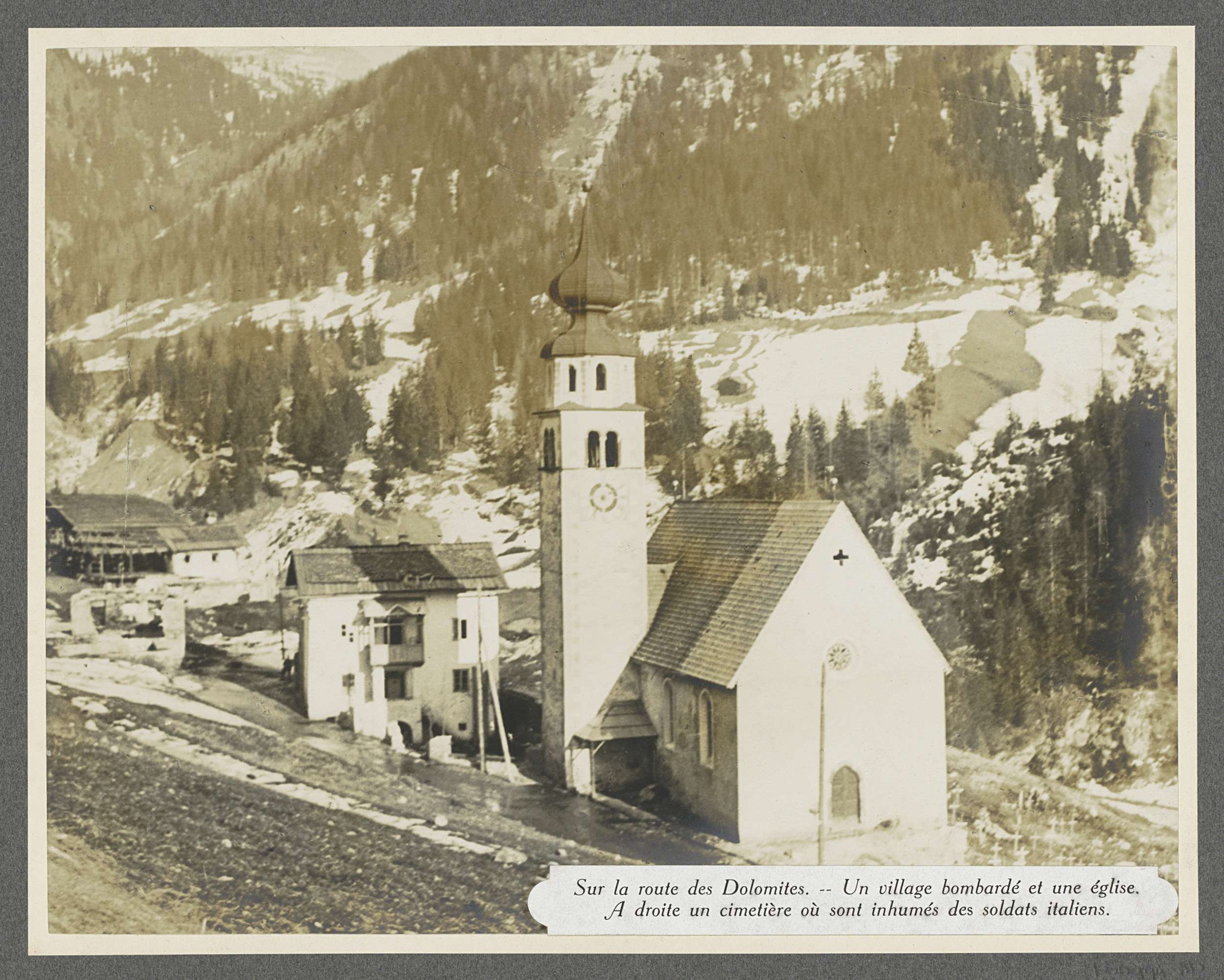 Gebombardeerd dorp in de Dolomieten