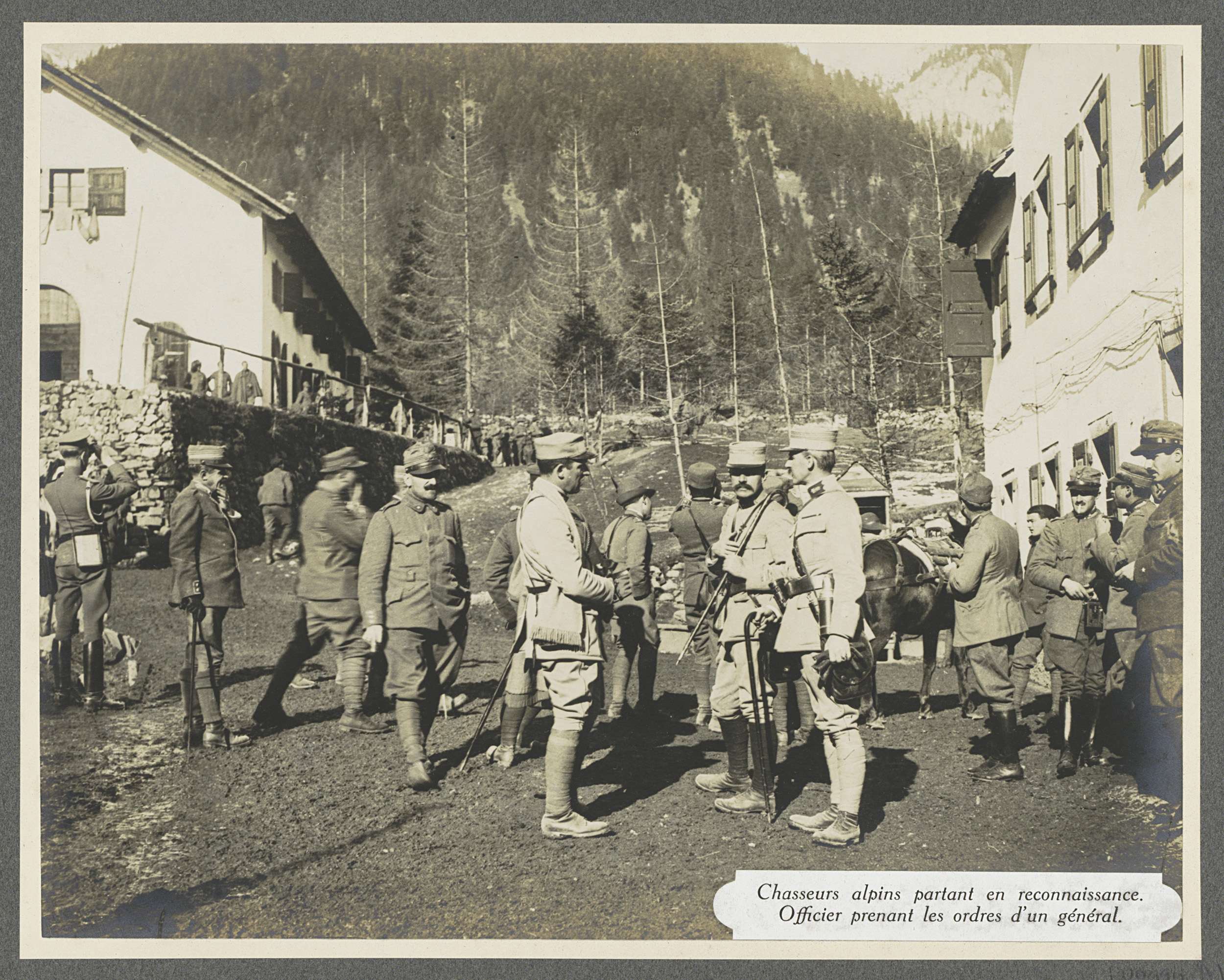 Officieren van de Alpenjagers ontvangen orders van e...