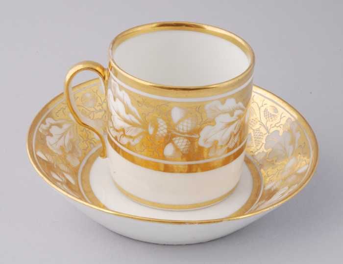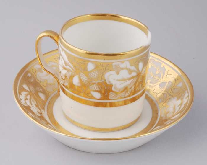 Witte kop en schotel met goudkleurige band met eikel...