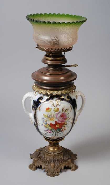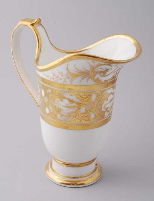 Witte melkkan met goudkleurige randen en bloem, eike...
