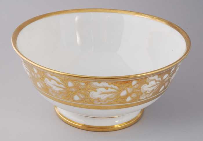 Witte spoelkom met goudkleurige band met eikel- en b...
