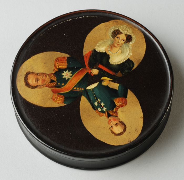 Snuifdoos met drie portretten op het deksel