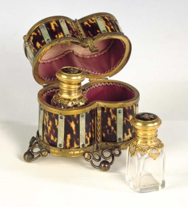 Foedraal van schildpad, parelmoer en messing met daa...
