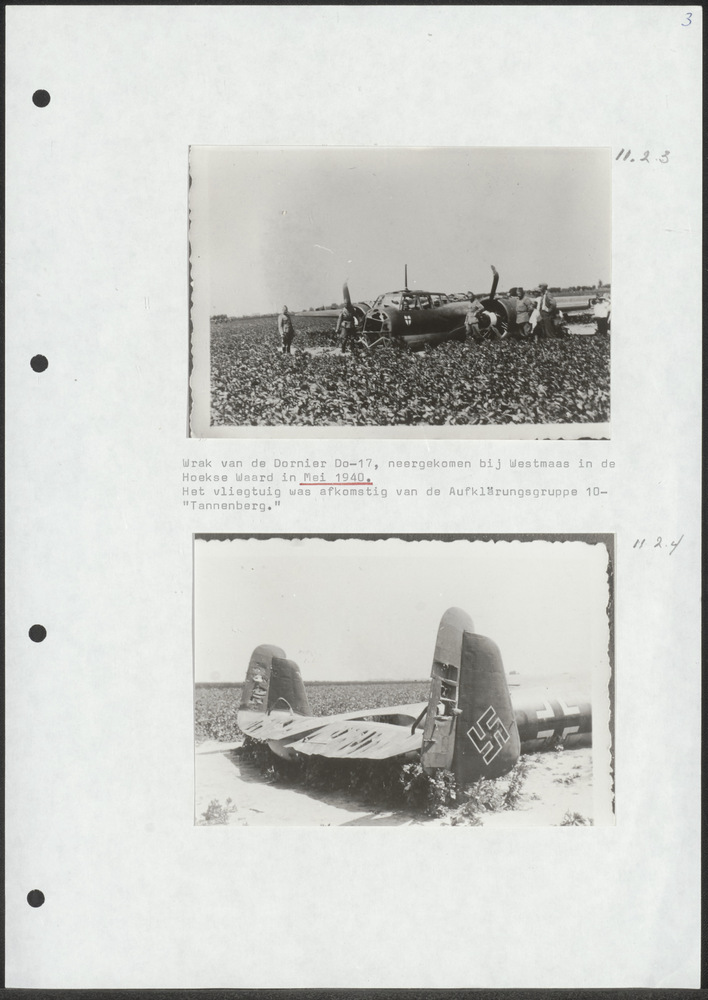 Foto vliegtuig wrak Dornier Do 17. Tekst: "Wrak van ...