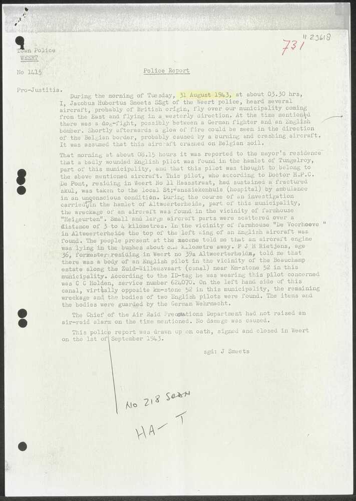 Proces-verbaal No. 1415 Gemeentepolitie Weert 31 aug...