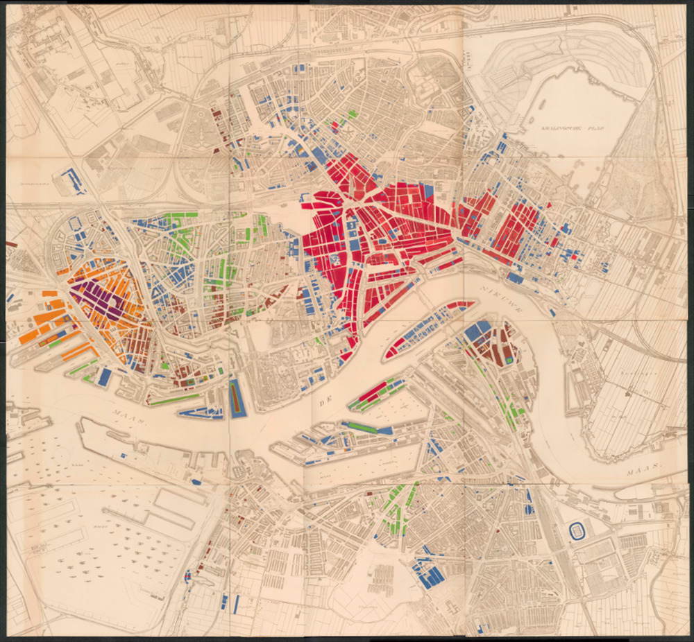 Kaart van Rotterdam: vernietigde en beschadigde pand...