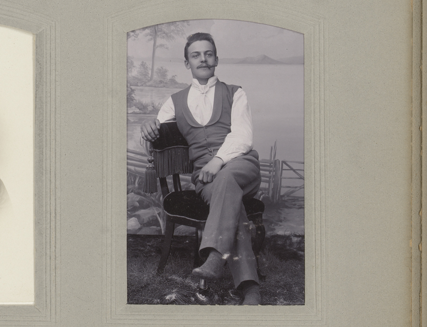 Portret van een zittende man met snor