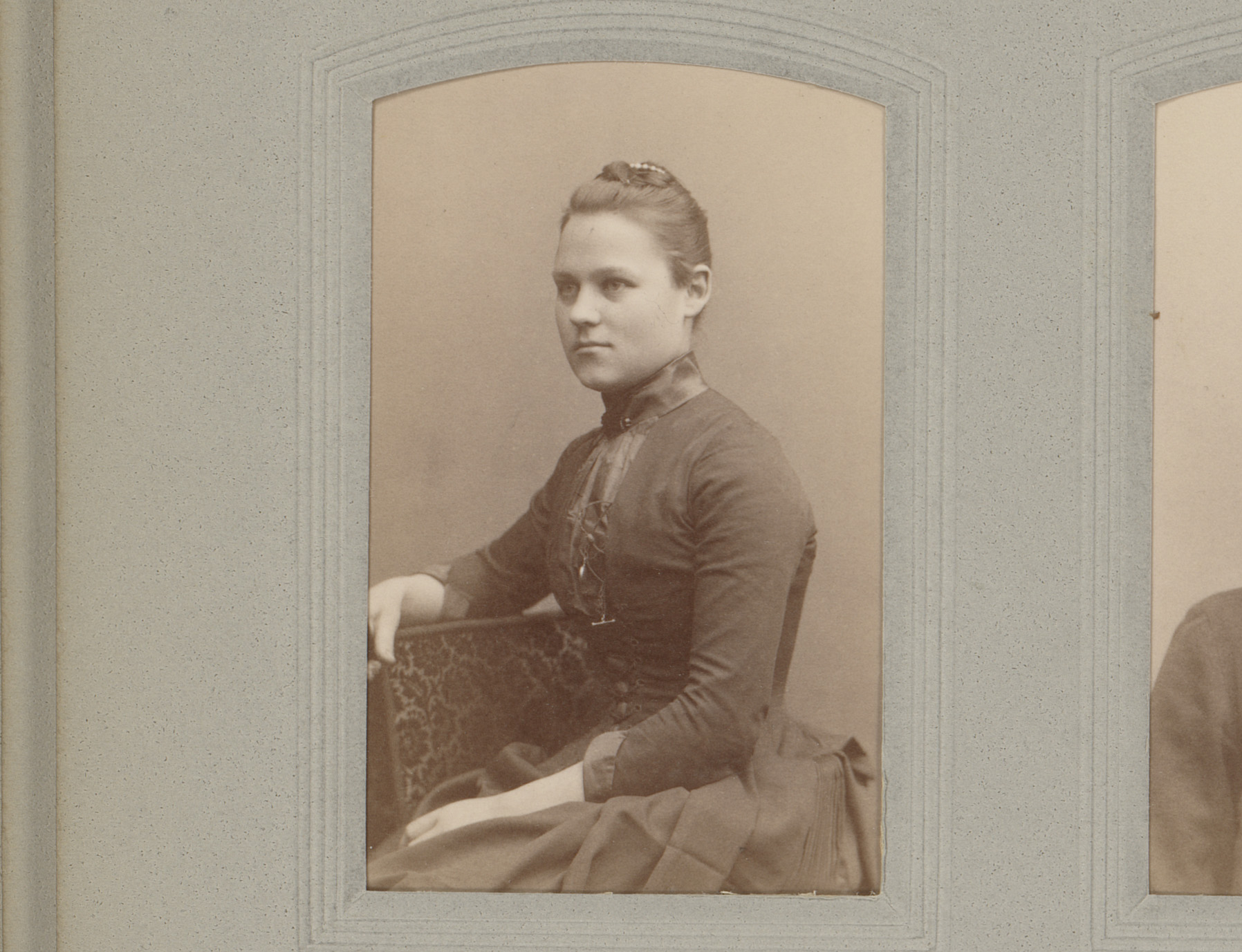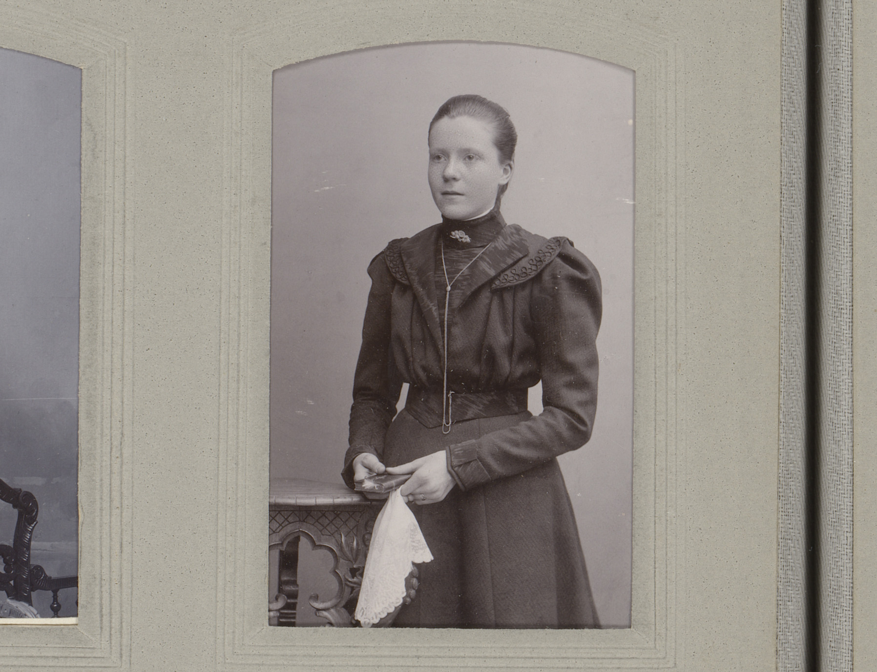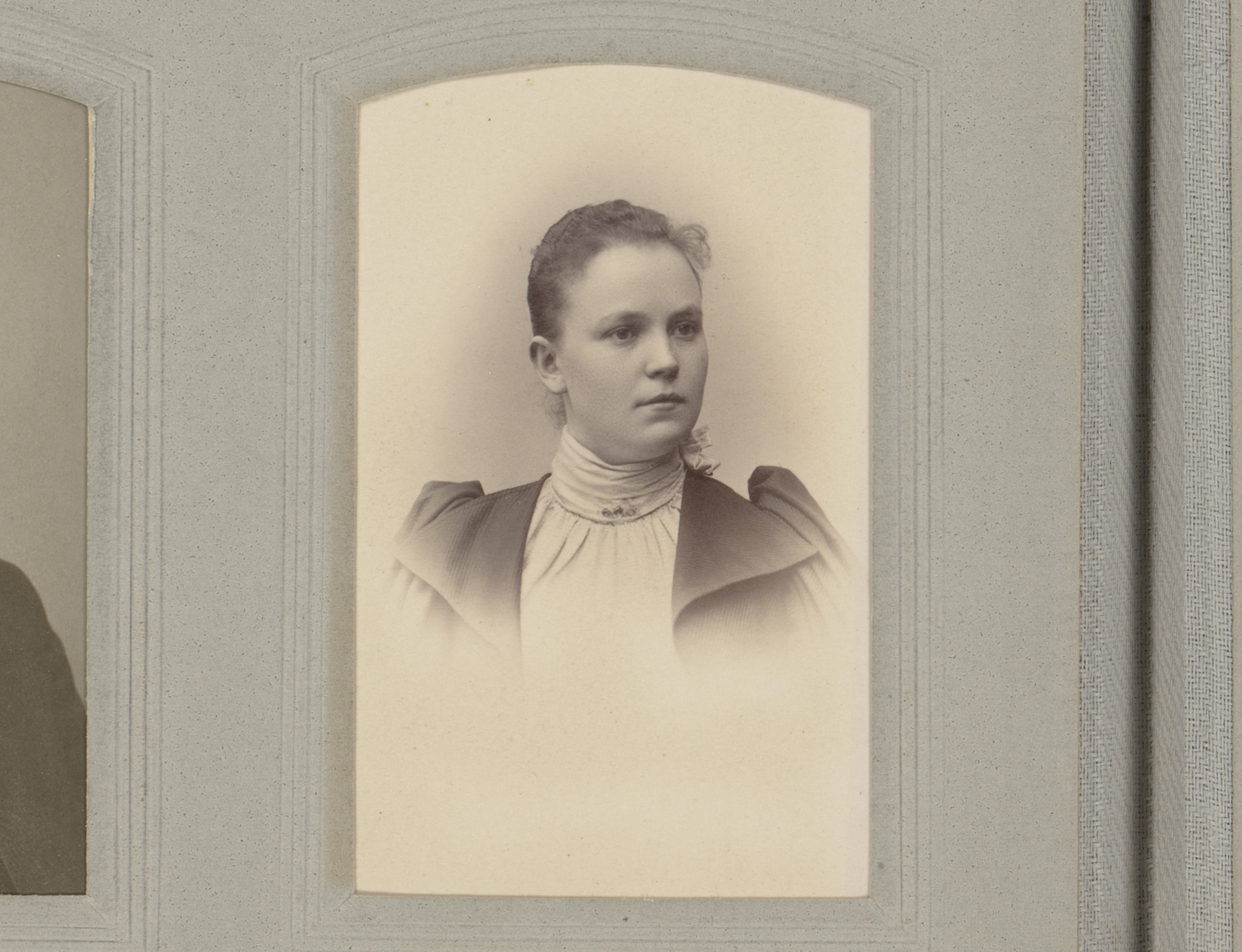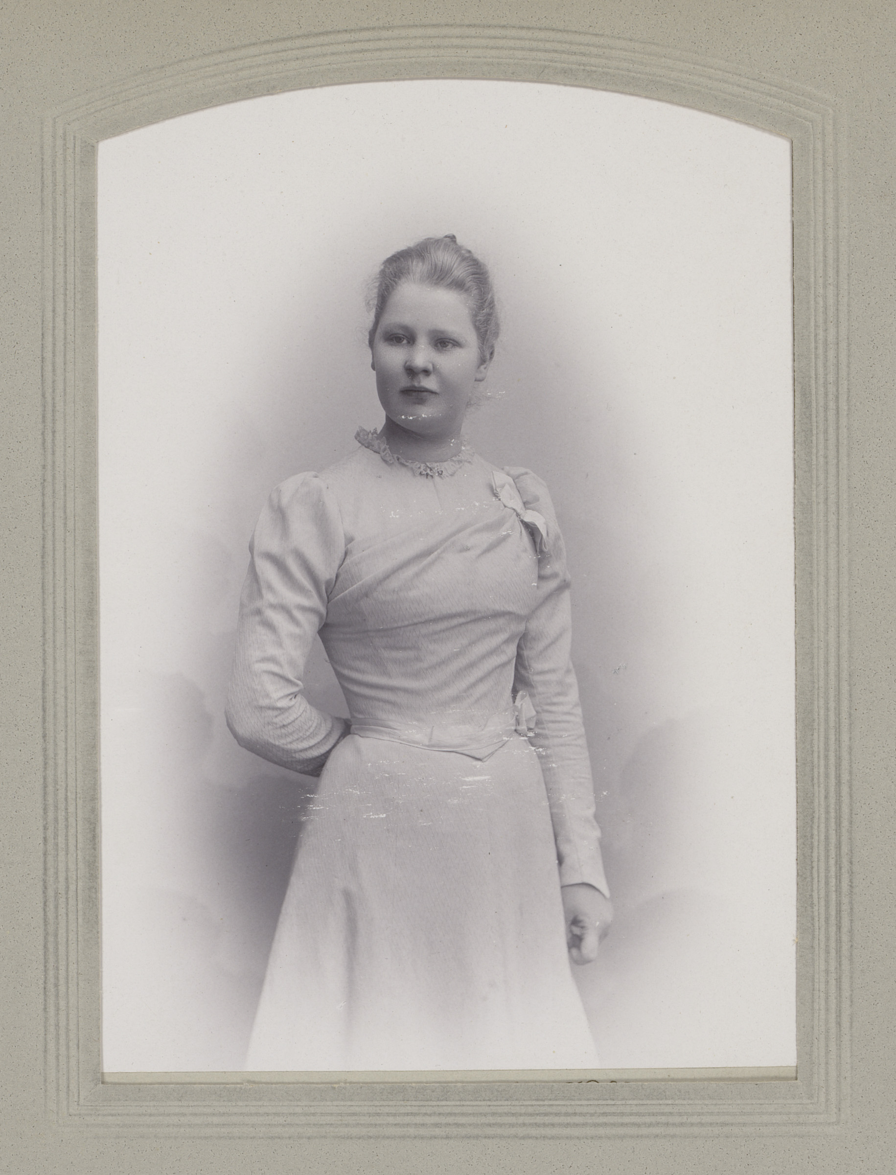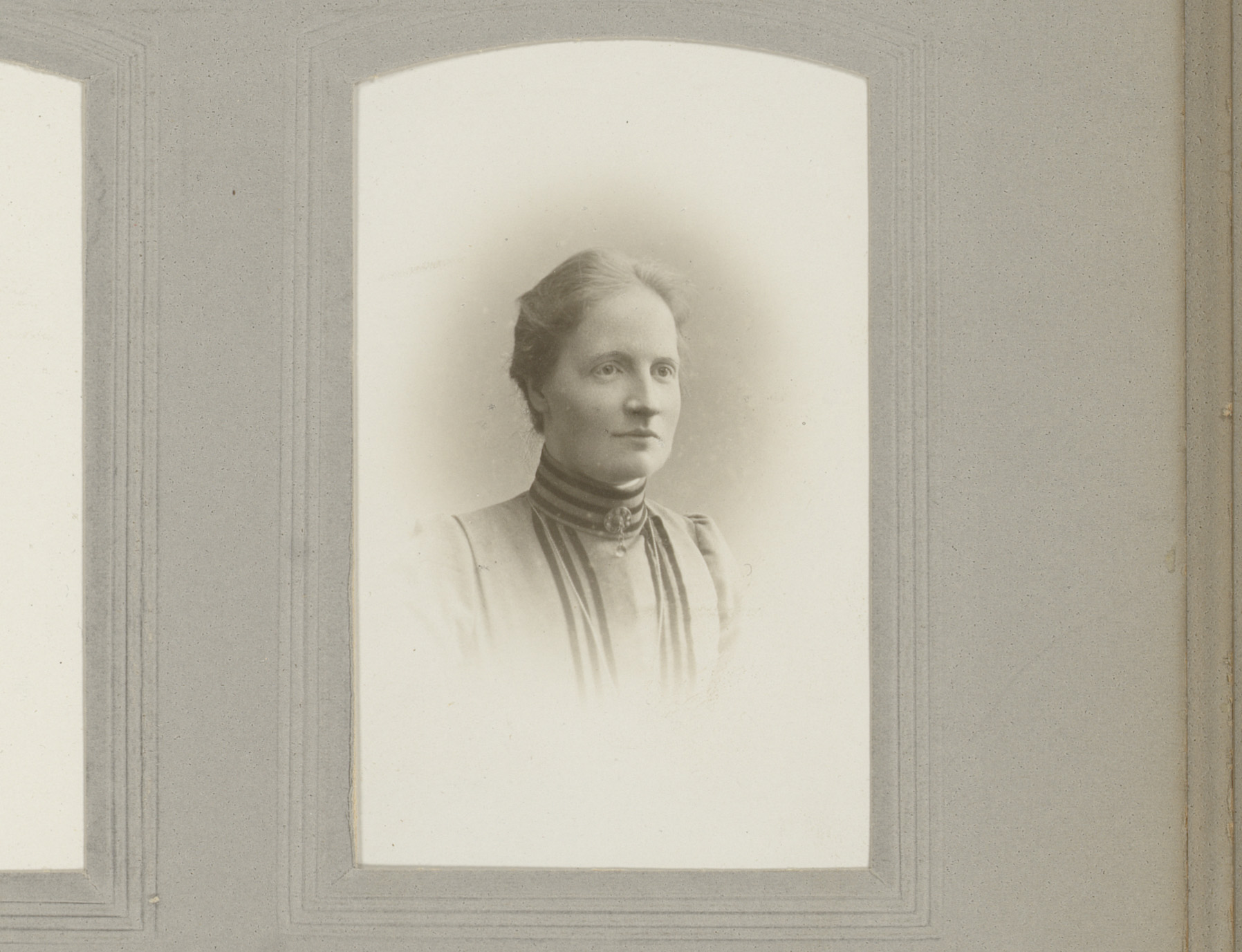 Portret van een vrouw in hooggesloten jurk