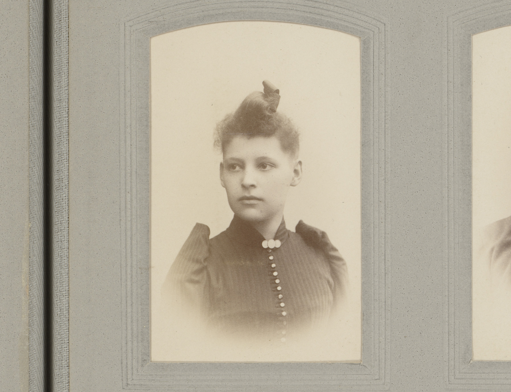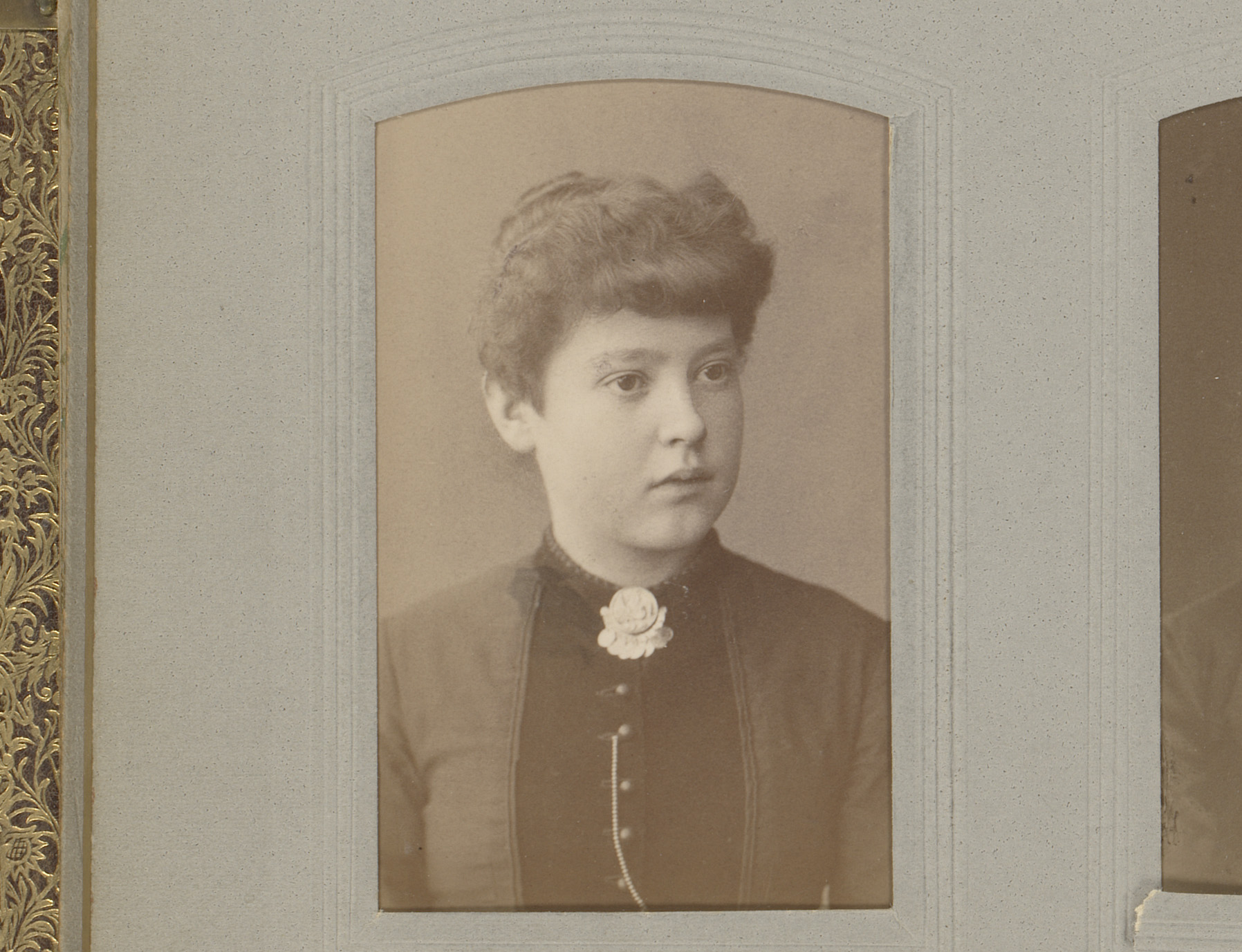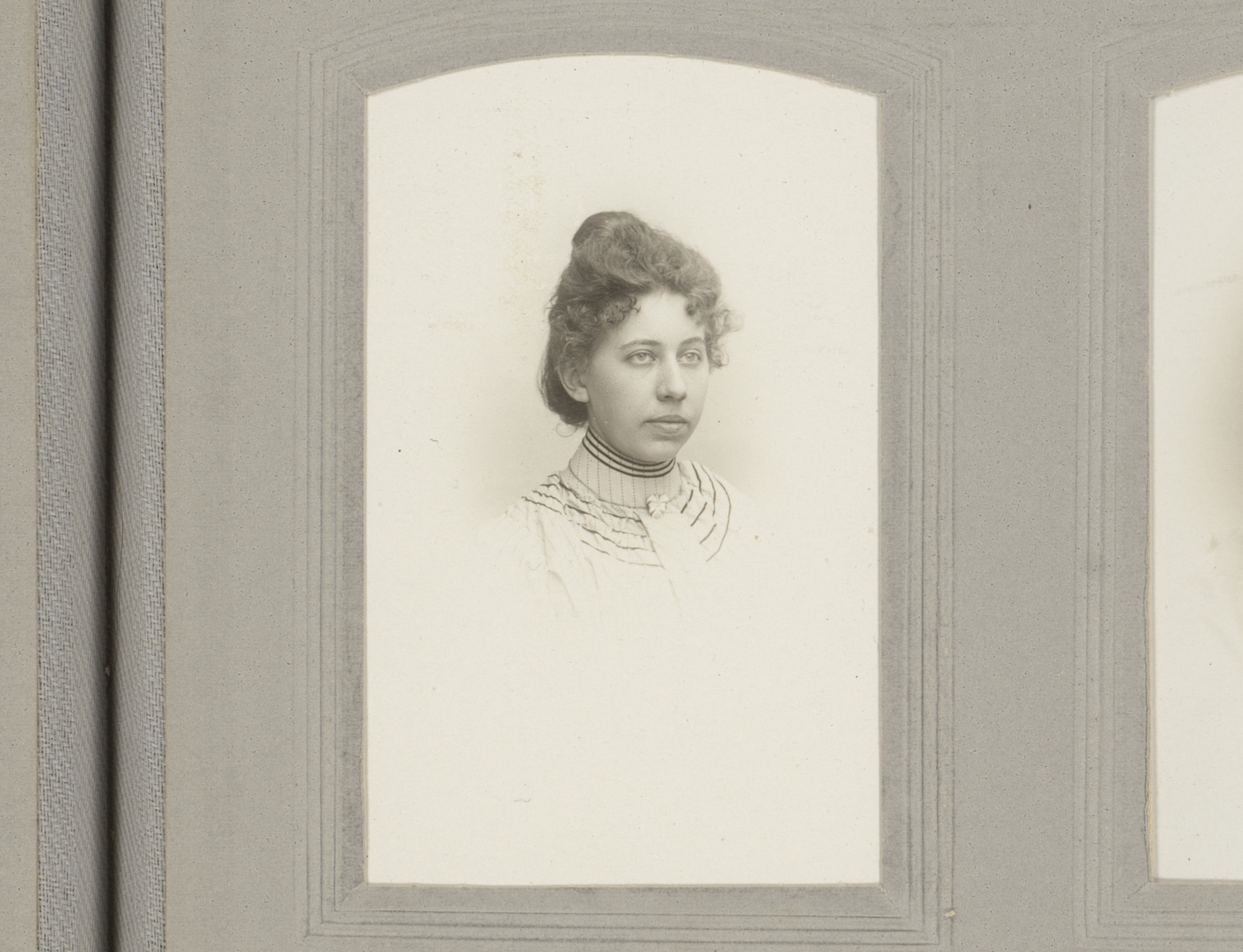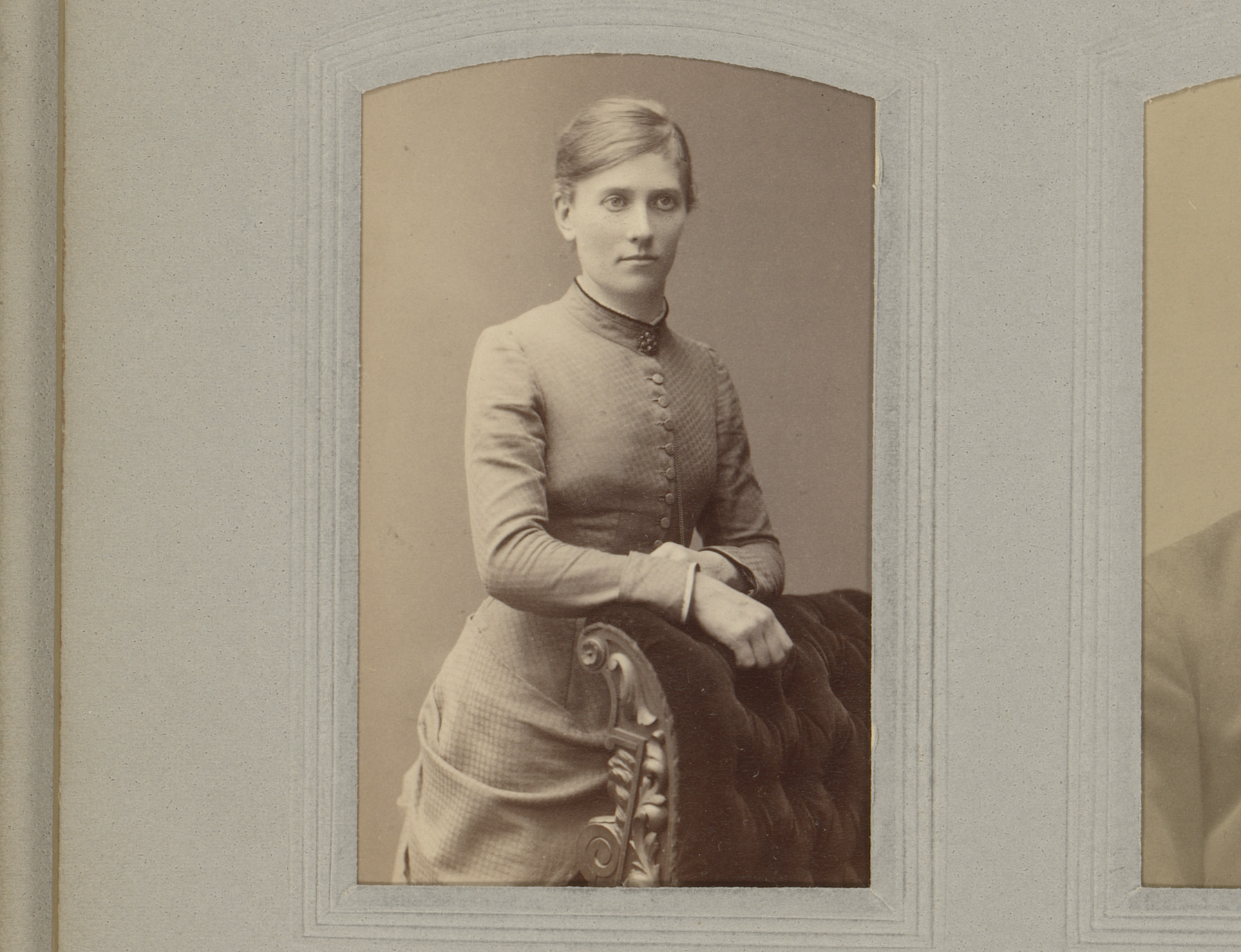 Portret van een vrouw in hooggesloten jurk