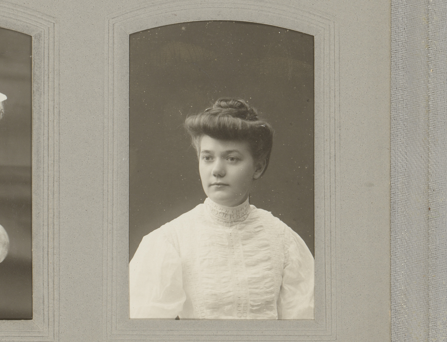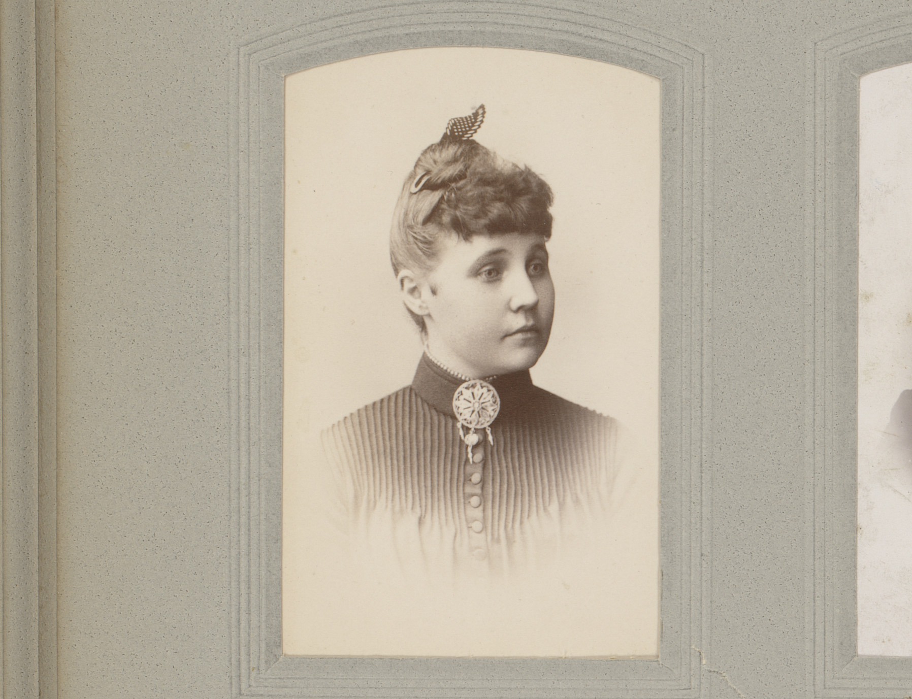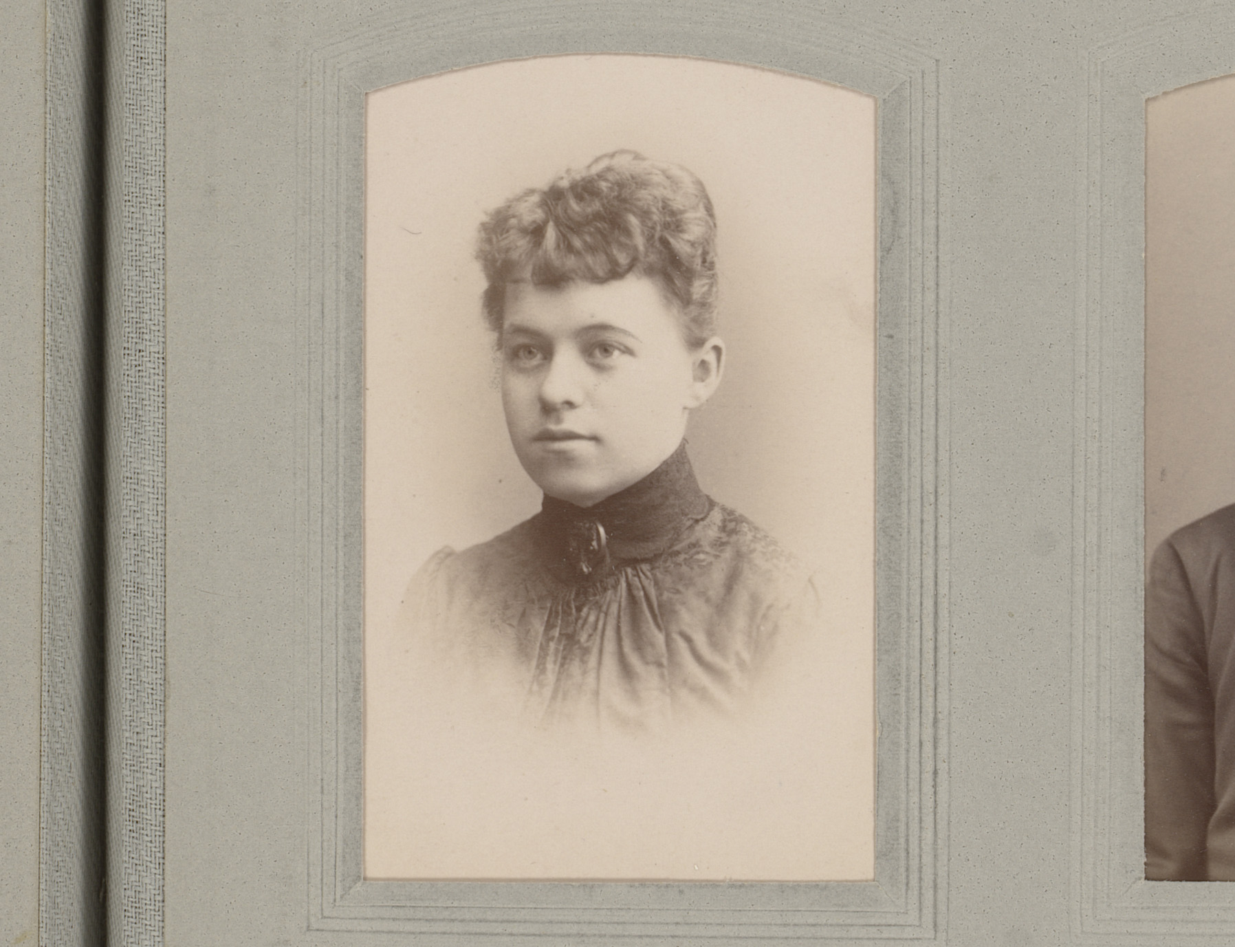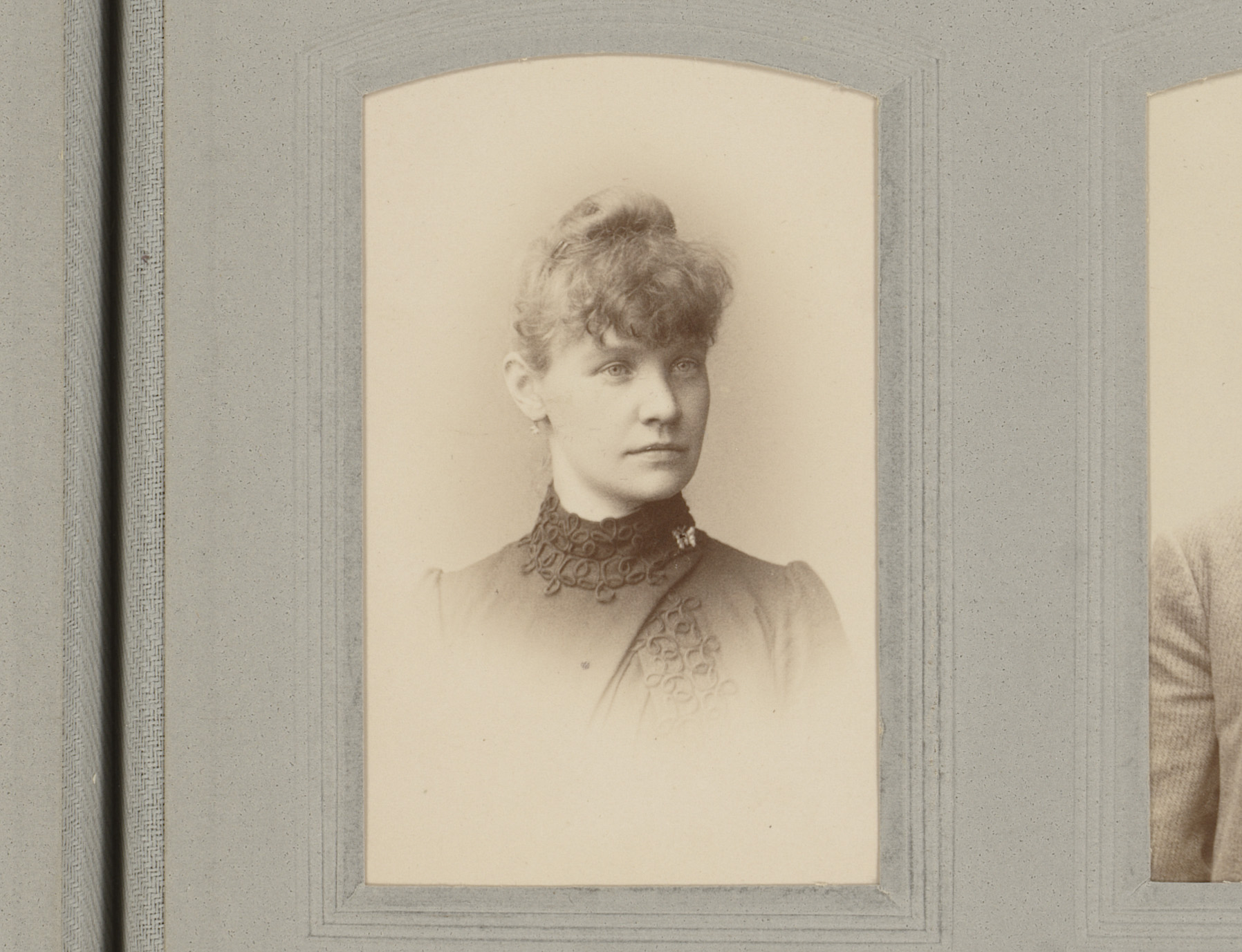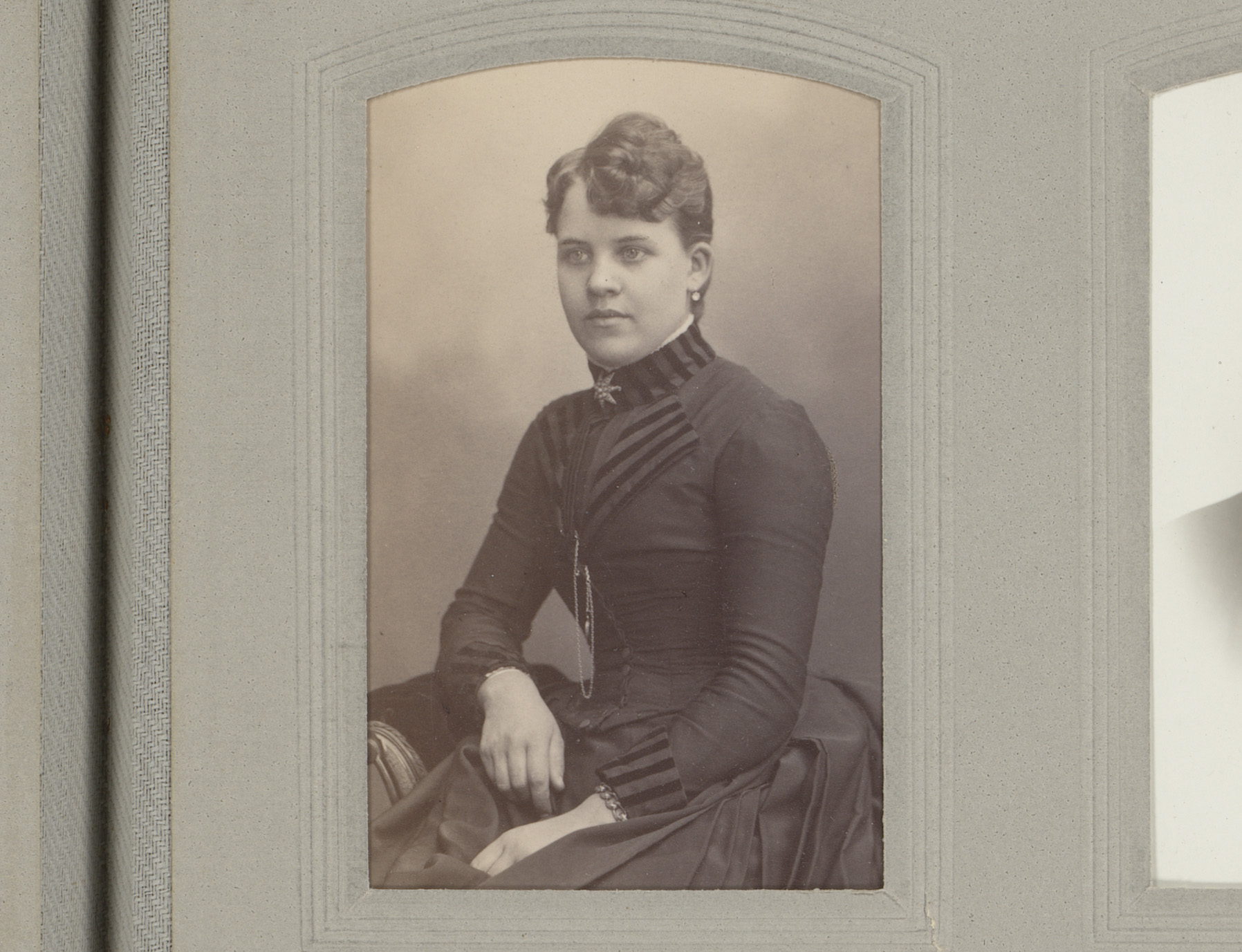 Portret van een vrouw in hooggesloten jurk