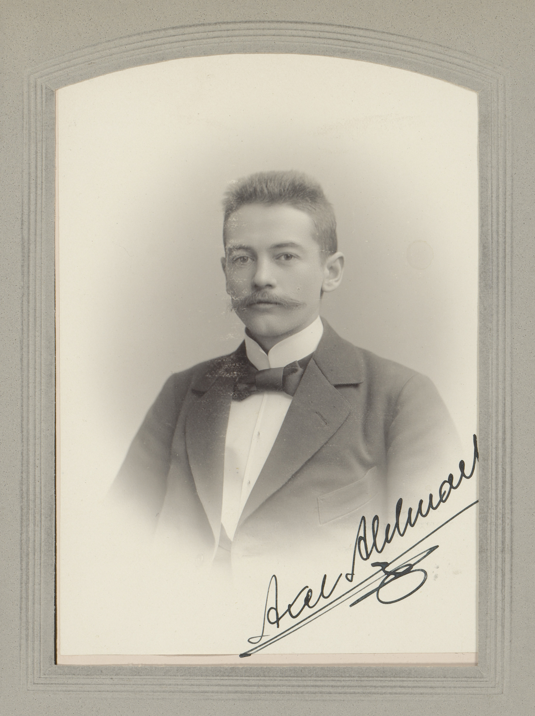 Portret van een man met snor en vlinderstrik