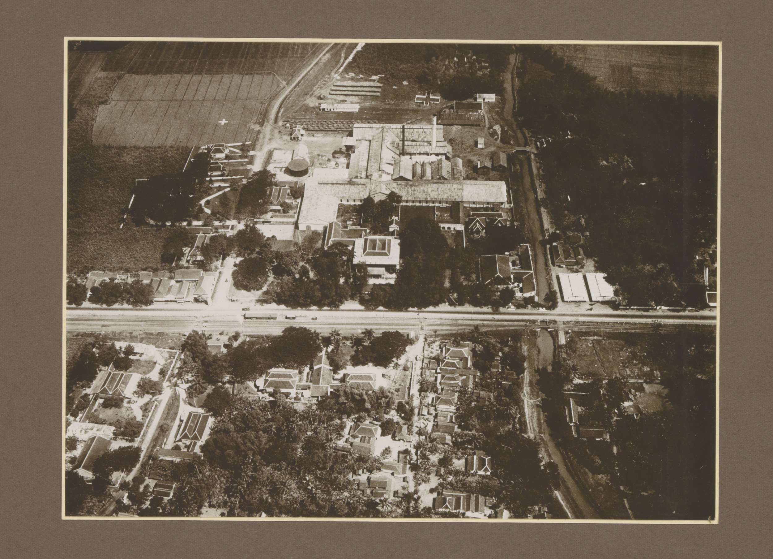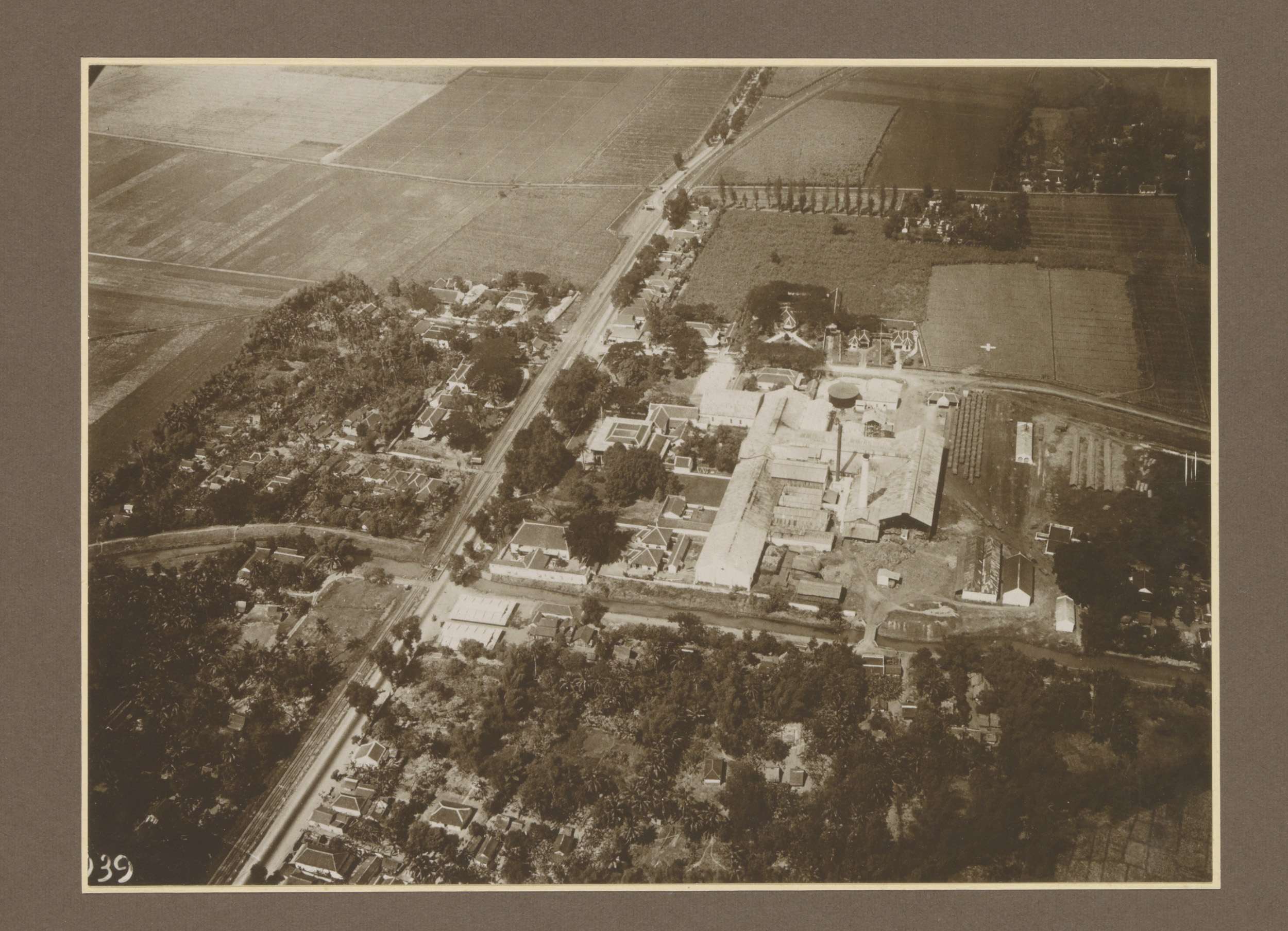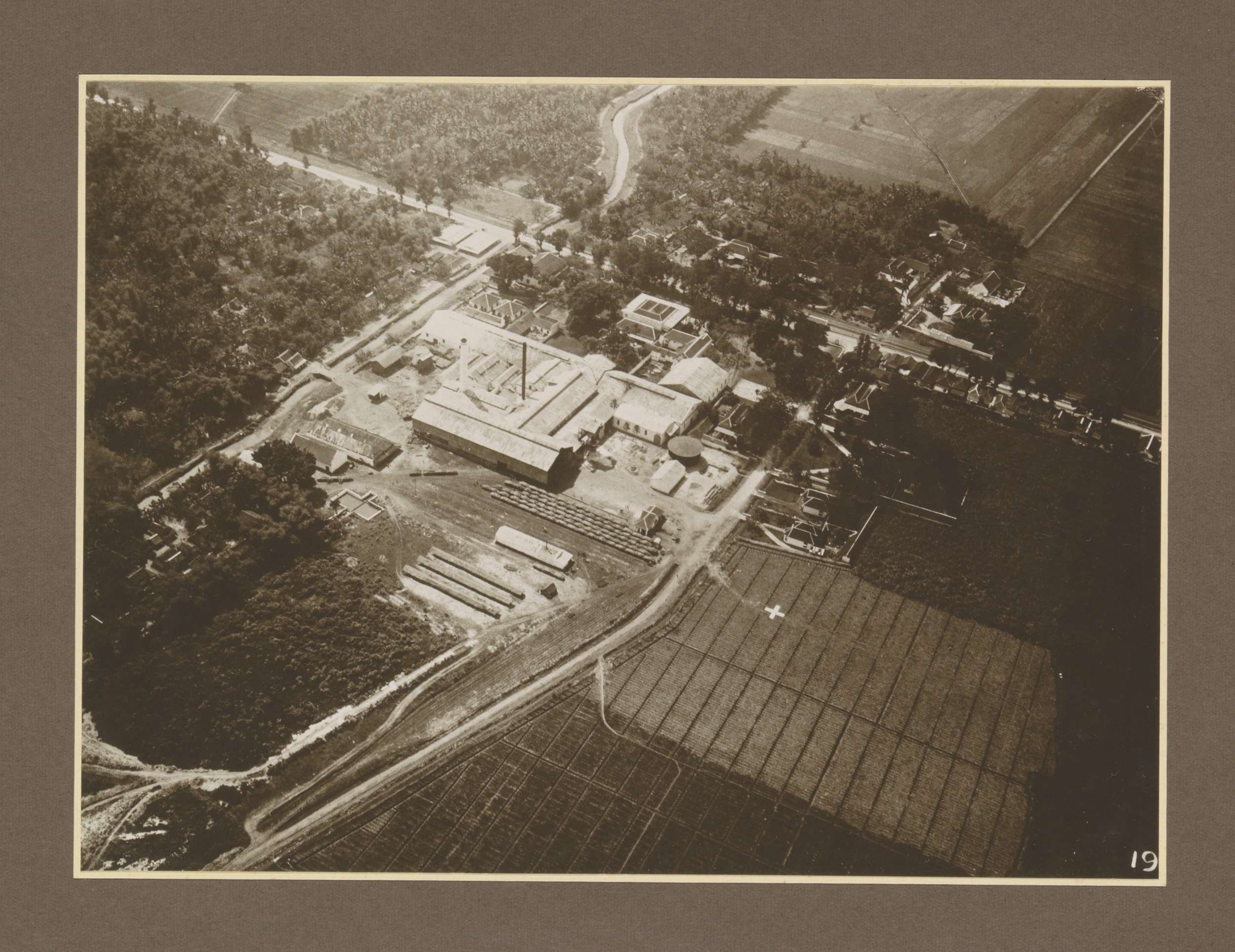 Luchtaanzicht van suikerfabriek Boedoeran in Sidoarj...