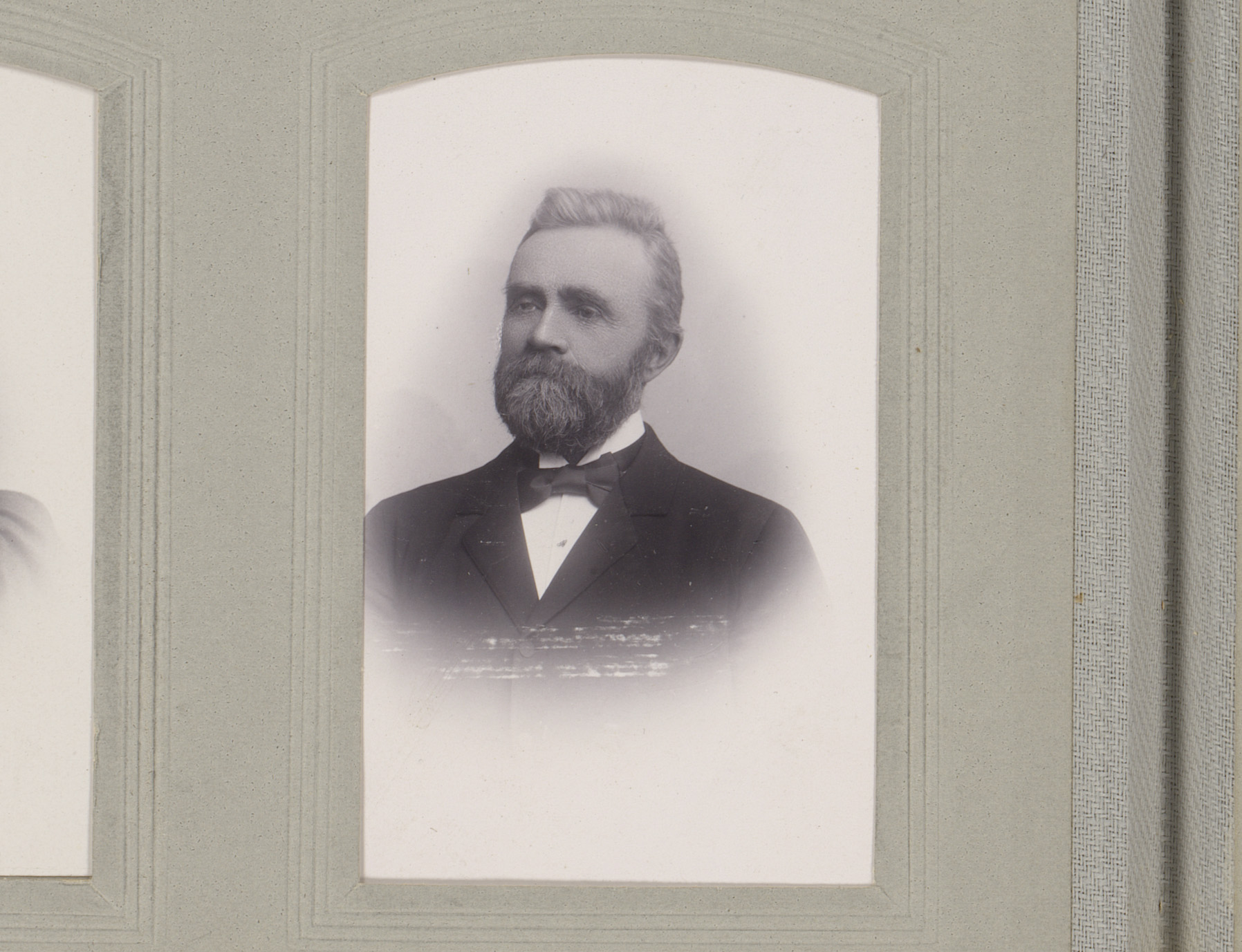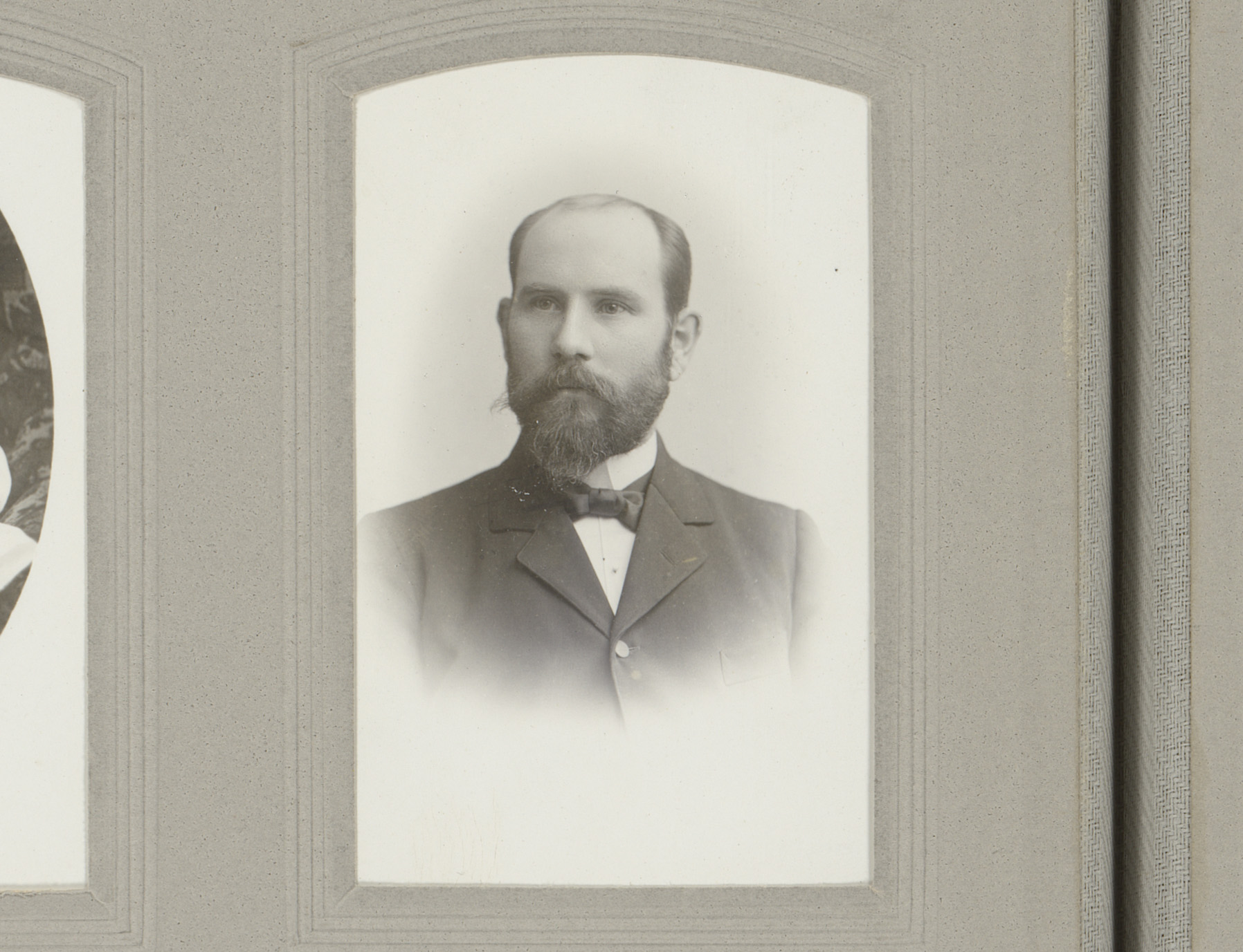Portret van een man met snor, baard en vlinderstrik