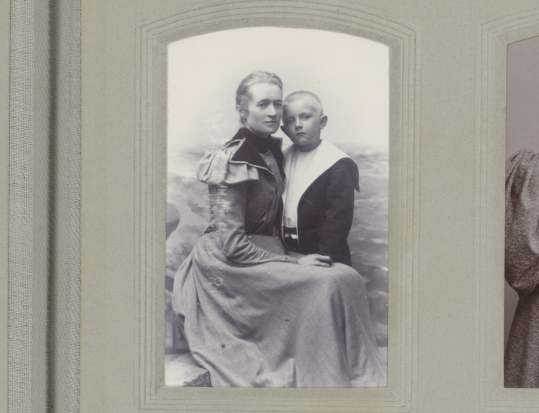 Portret van een zittende vrouw en een staande jongen