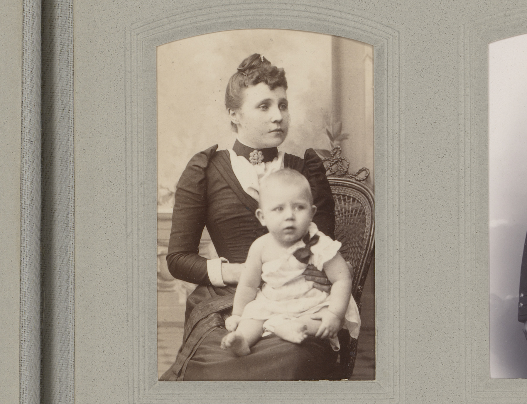 Portret van een staande vrouw en een zittend kind