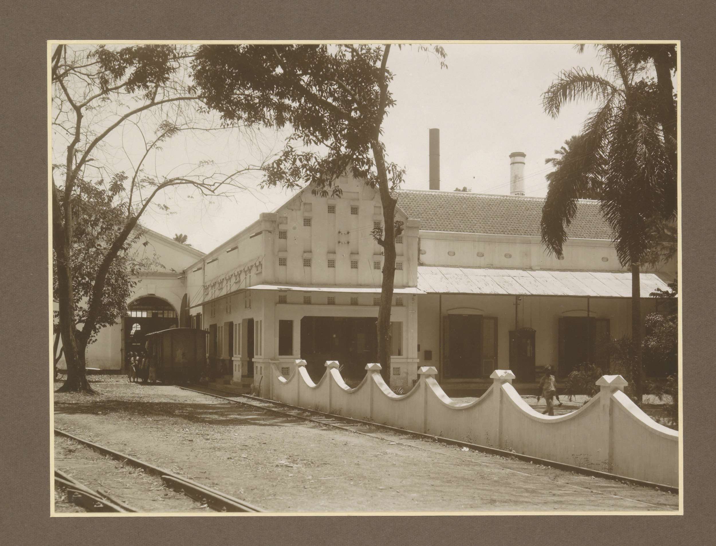 Kantoorgebouw en spoorwegemplacement bij suikerfabri...