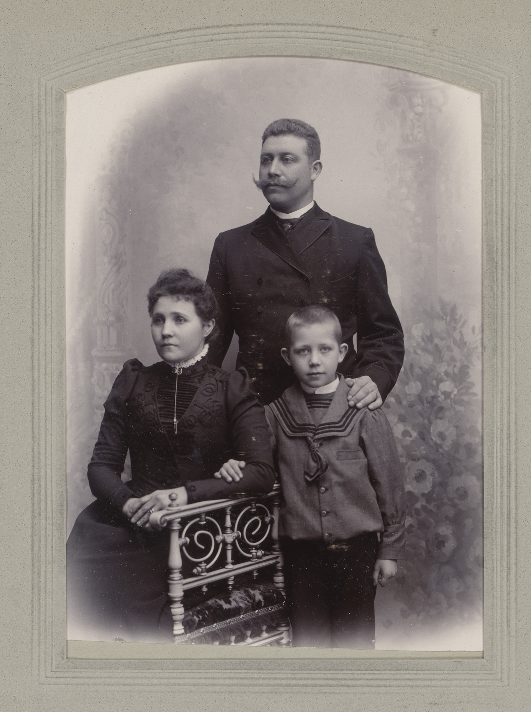 Familieportret van een staande man, een zittende vro...