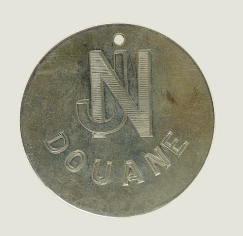 Draagspeld met monogram N J en het woord: Douane.