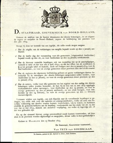 Plakkaat beschrijving patenten, 1823