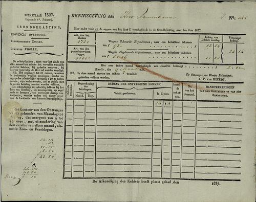 Kennisgeving, grondbelasting, 1837