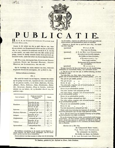 Plakkaat accijns op geslacht, 1822
