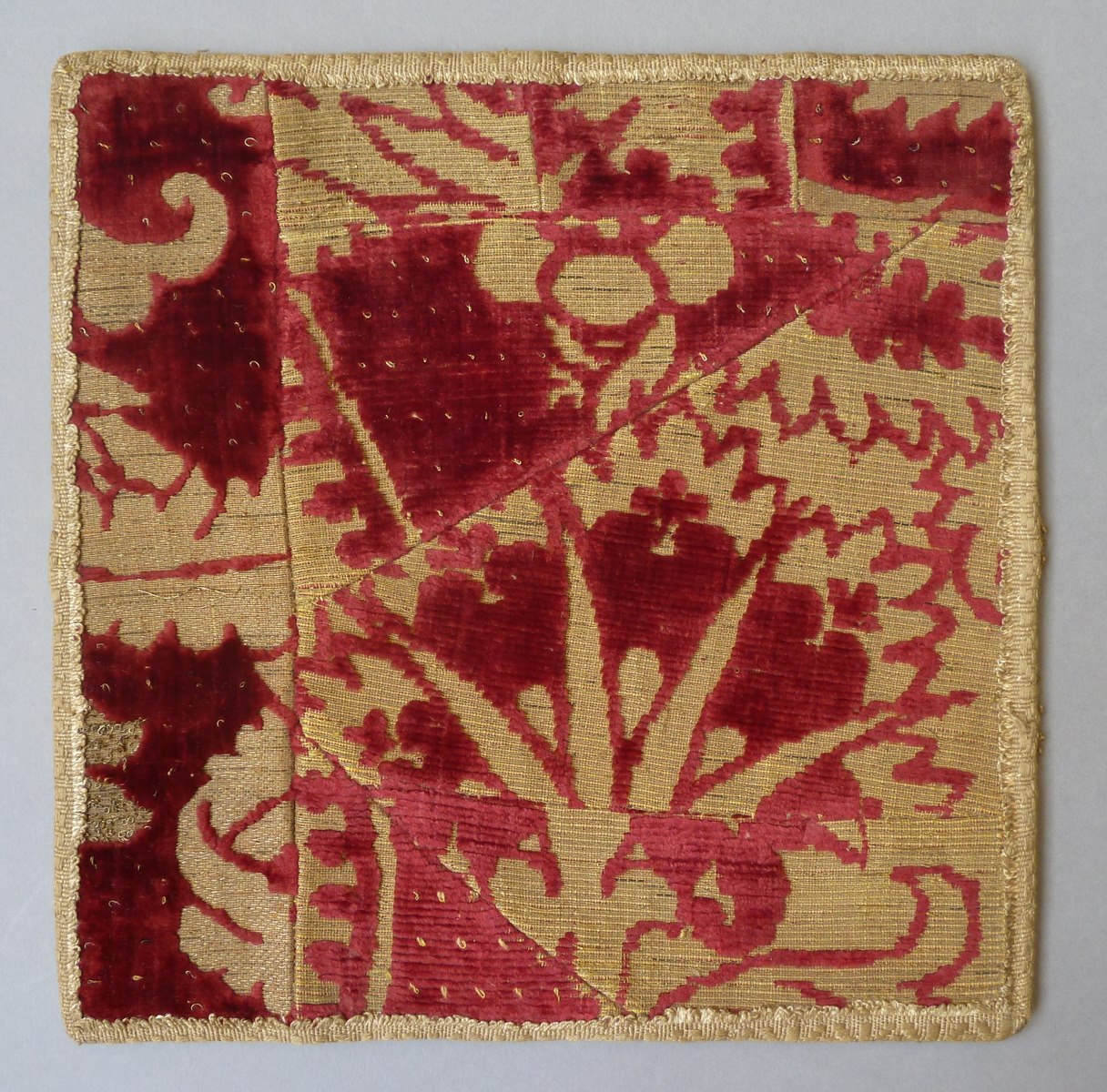 Rode beurs, afgezet met goudgalon en met 'IHS' in st...