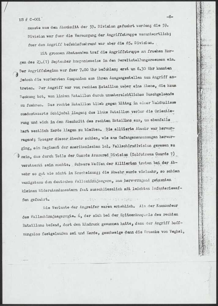 Duits gevechtsrapport : F. von der Heydte, M S C-001...