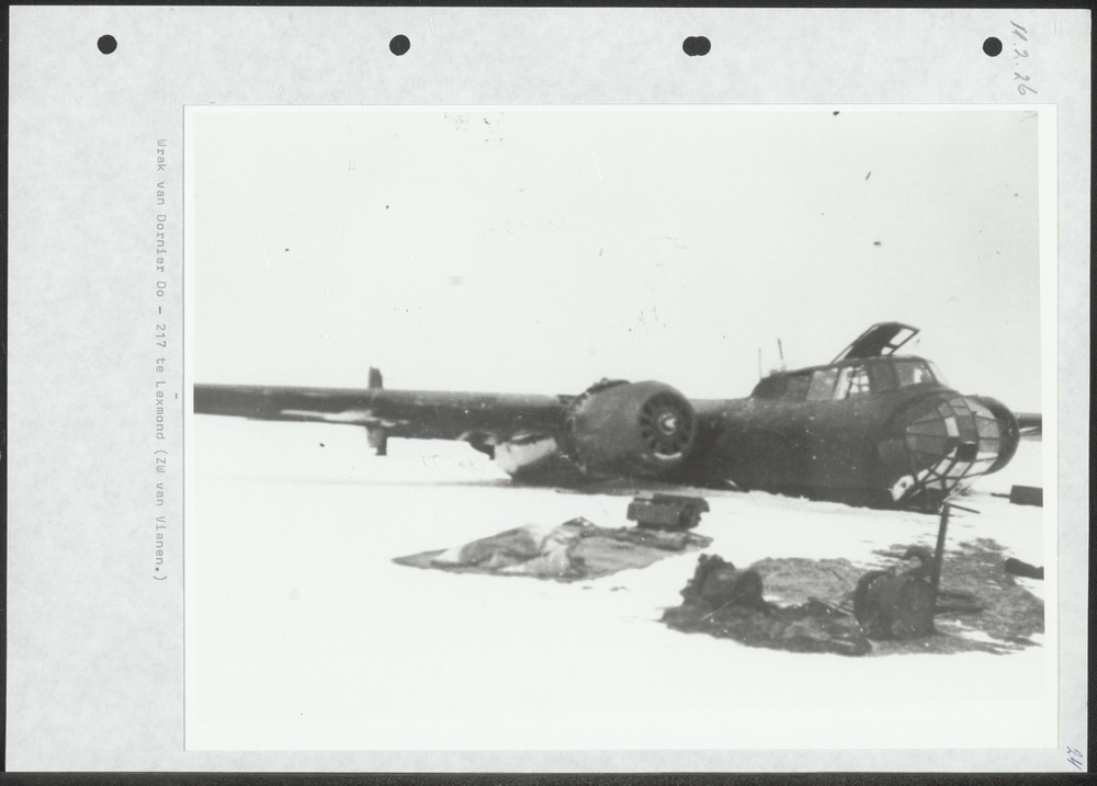 Foto Duitse Do-217 bommenwerper die een buiklanding ...