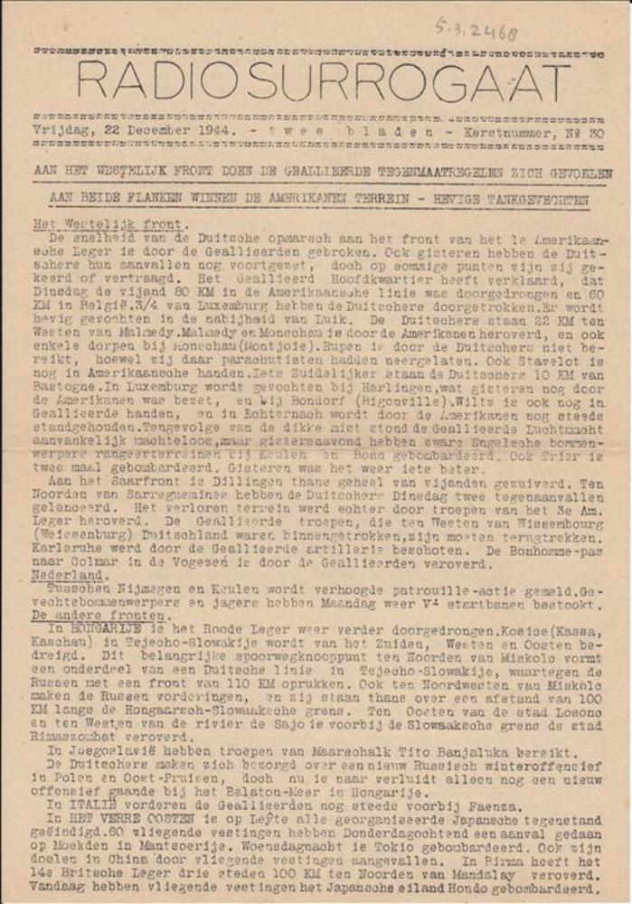 Radio Surrogaat, Donderdag 18 December 1944, No 29.