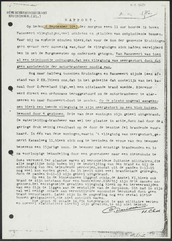 Rapport Luchtbeschermingsdienst Kruiningen, 2 septem...