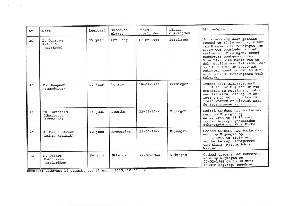 Lijst slachtoffers van de Tweede Wereldoorlog uit de...