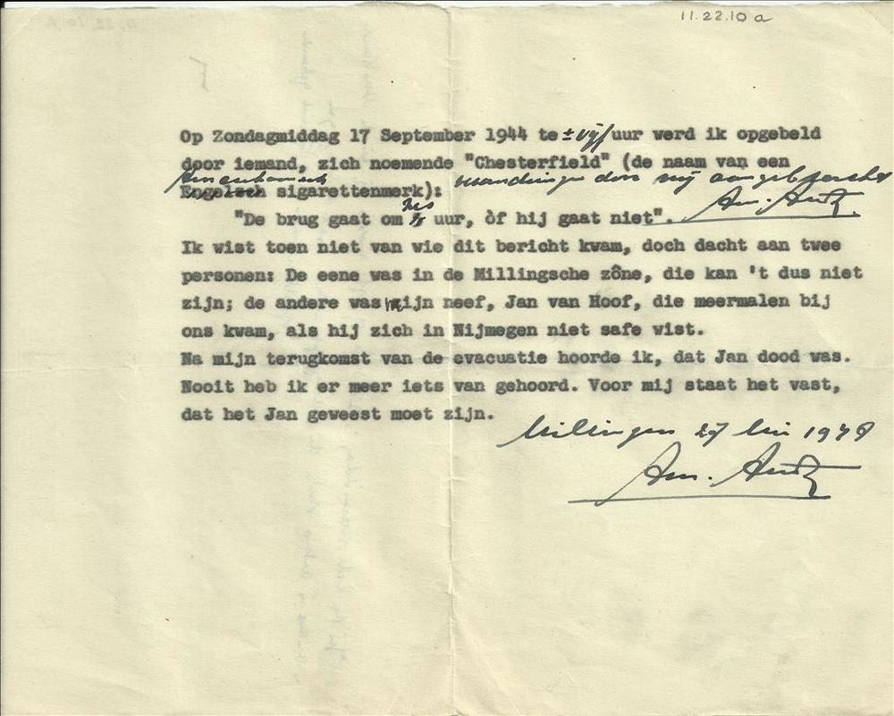Verklaring over telefoongesprek met Jan van Hoof, ge...