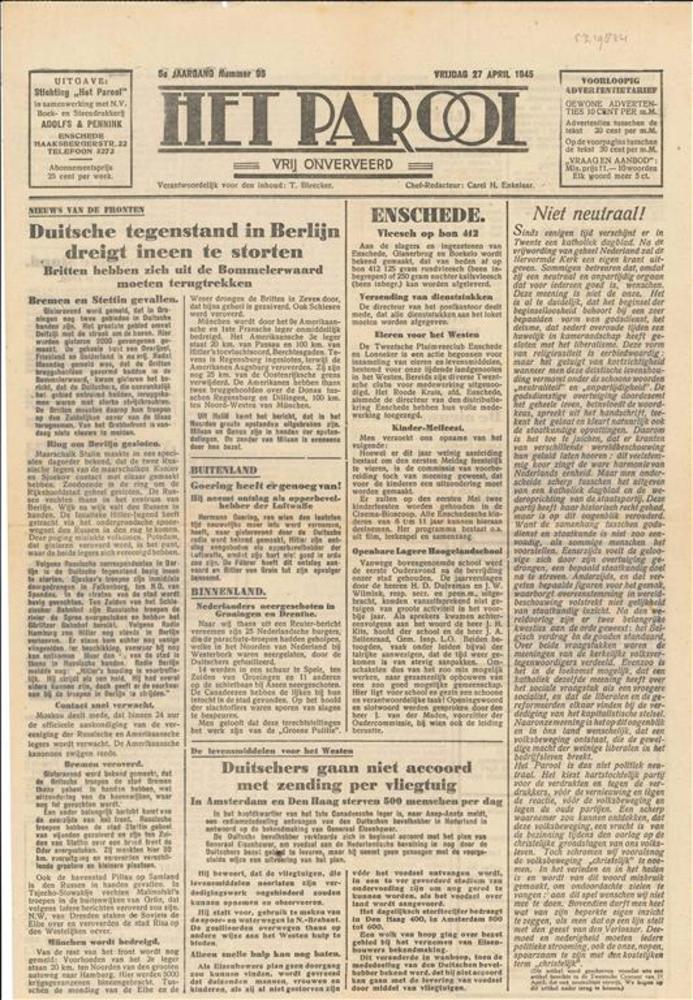 Het Parool, Twentse editie, 5e jaargang nummer 96, v...