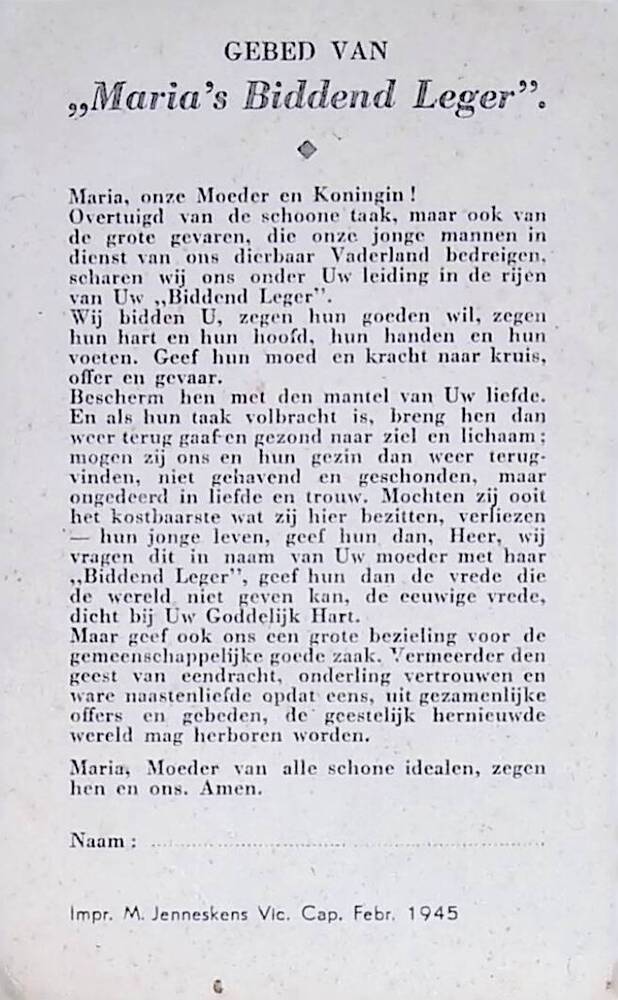 Bidprentje. Maria's Biddend Leger