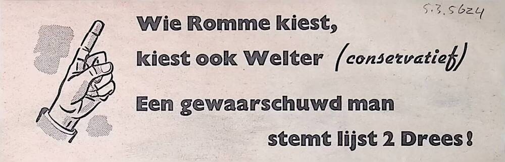 Pamflet: "Wie Romme kiest, kiest ook Welter (conserv...