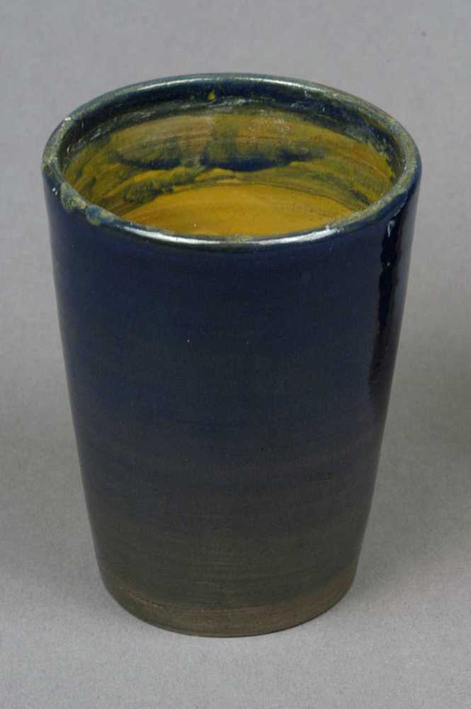vaas van keramiek, blauw/geel van kleur.