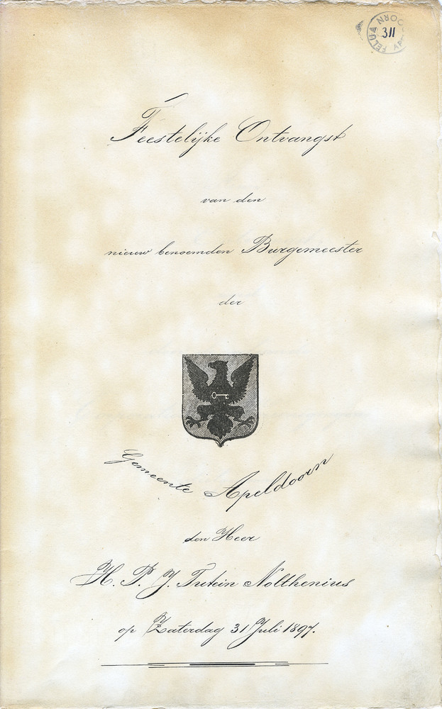 Feestelijke ontvangst van den nieuw benoemden burgem...