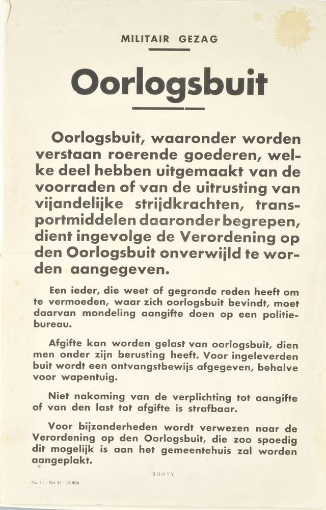 melden van oorlogsbuit op last van het Militair Gezag