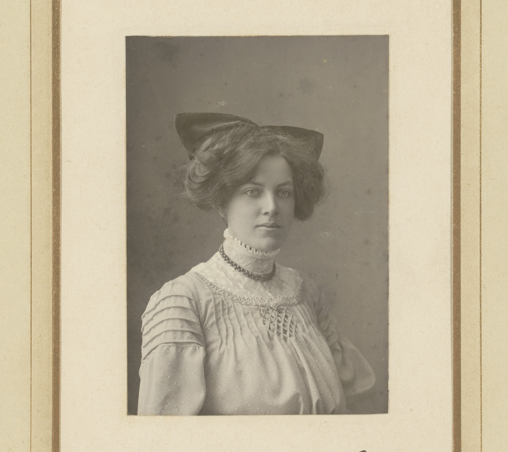 Portret van een vrouw met strik